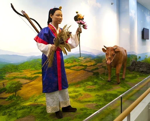 제주도의 신들 가운데 가장 매력적이며 ‘농사의 신’으로 추앙받는 자청비(自請妃). 스스로 여인이 되기를 청하였다는, 우리나라에서 찾아보기 어려운 유형의 왈가닥 여신이다. 맘에 둔 남자(옥황상제의 아들인 문도령)와 가까워지려고 남장을 한 채 ‘오줌 멀리 눕기’와 같은 시합도 마다하지 않고, 그와 결혼하기 위해 온갖 지혜를 짜낸다. 그뿐인가? 외적이 쳐들어오자 문약한 남편을 대신해 군사를 이끌고 전장에 나가 적을 물리치기도 했다. 오늘날 자수성가한 여장부의 모습이 자청비라고 하면 무리일까? 진취적이며 말괄량이의 전형을 보여 주던 그녀는 돌연 하늘나라에서 오곡을 얻어 지상으로 내려와 ‘농사의 신’으로 안주(?)한다. 왜 지상으로 내려왔을까? 지상으로 내려온 동기가 명확하지 않아 갑자기 바람 빠진 풍선을 보는 것 같은 허망함이 느껴진다.