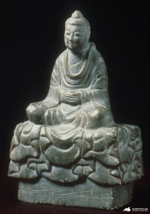1935년, 일본의 불교 고고학 전문가인 이시다 모사쿠가 부여 군수리 사지(軍守里寺址)에서 6세기 중엽에 제작된 것으로 추정되는 석조여래좌상(보물 329호), 금동 미륵보살입상(보물 330호) 및 칠지도 등의 유물을 발굴하였다. 이 가운데 칠지도는 발굴했다는 기록만 있고 사진조차 남아 있지 않아 안타까움을 더하고 있다. 주목할 점은 이 발굴이 칠지도가 특정한 시기에 만들어진 유물이 아니고 백제 시대 전반에 걸쳐 제작되고 활용된 신물이었음을 시사하고 있다는 사실이다. 황제국인 백제가 제후국인 일본에 하사한 신표였을 개연성이 높아진 것이다.