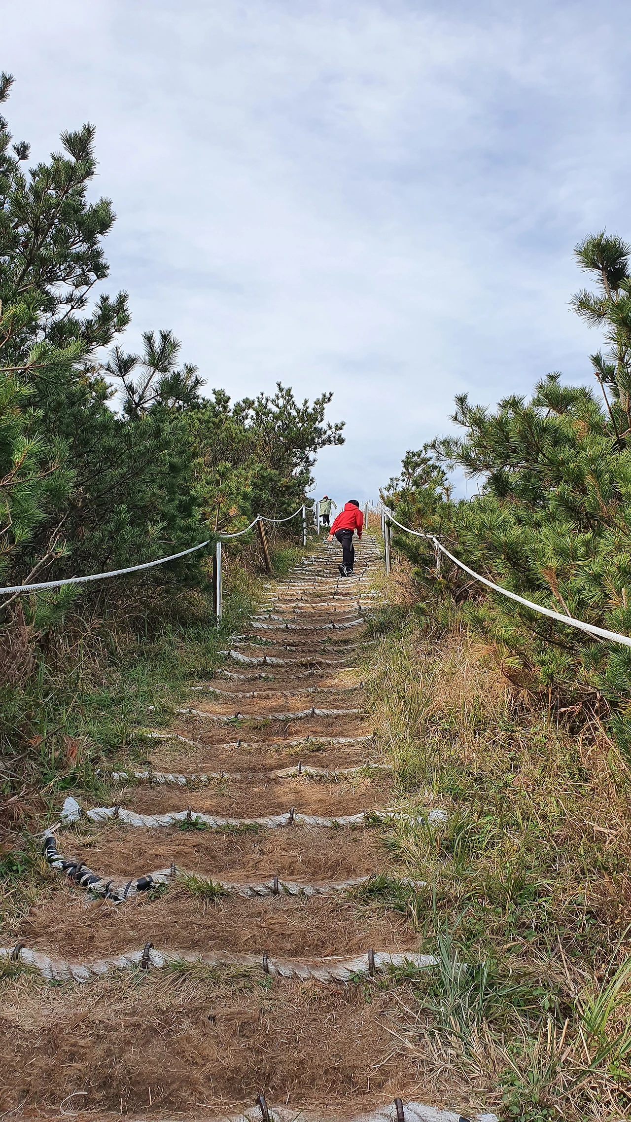 멀리 다랑쉬오름이 보였다. 부드럽게 흘러내리는 둥그런 능선이 비너스의 가슴처럼 완벽한 아름다움을 뽐낸다. 과연 ‘오름의 여왕’이라 불릴 만한 자태다. 아름다움이 눈앞에 있는데 어찌 마음이 급하지 않으랴. 부지런히 걸어 오름 밑둥지에 도착했다. 입구를 찾으려고 주변을 살피다 다랑쉬 둘레길이라는 팻말을 발견했다. 앞뒤 안 가리고 들어섰다. 급히 먹는 밥은 체하기 마련이라더니 서두르다 그만 3.4Km 길이의 둘레길을 한 바퀴 돌고 나서야 비로소 입구를 만났다. 모퉁이만 돌면 바로 입구인데 서둘다 그만 반대편으로 돌아간 것이다. 그래도 둘레길의 멋진 풍경을 봤으니 손해만 본 건 아니다. 숨 한번 깊게 몰아쉬고 허위허위 정상에 올랐다.