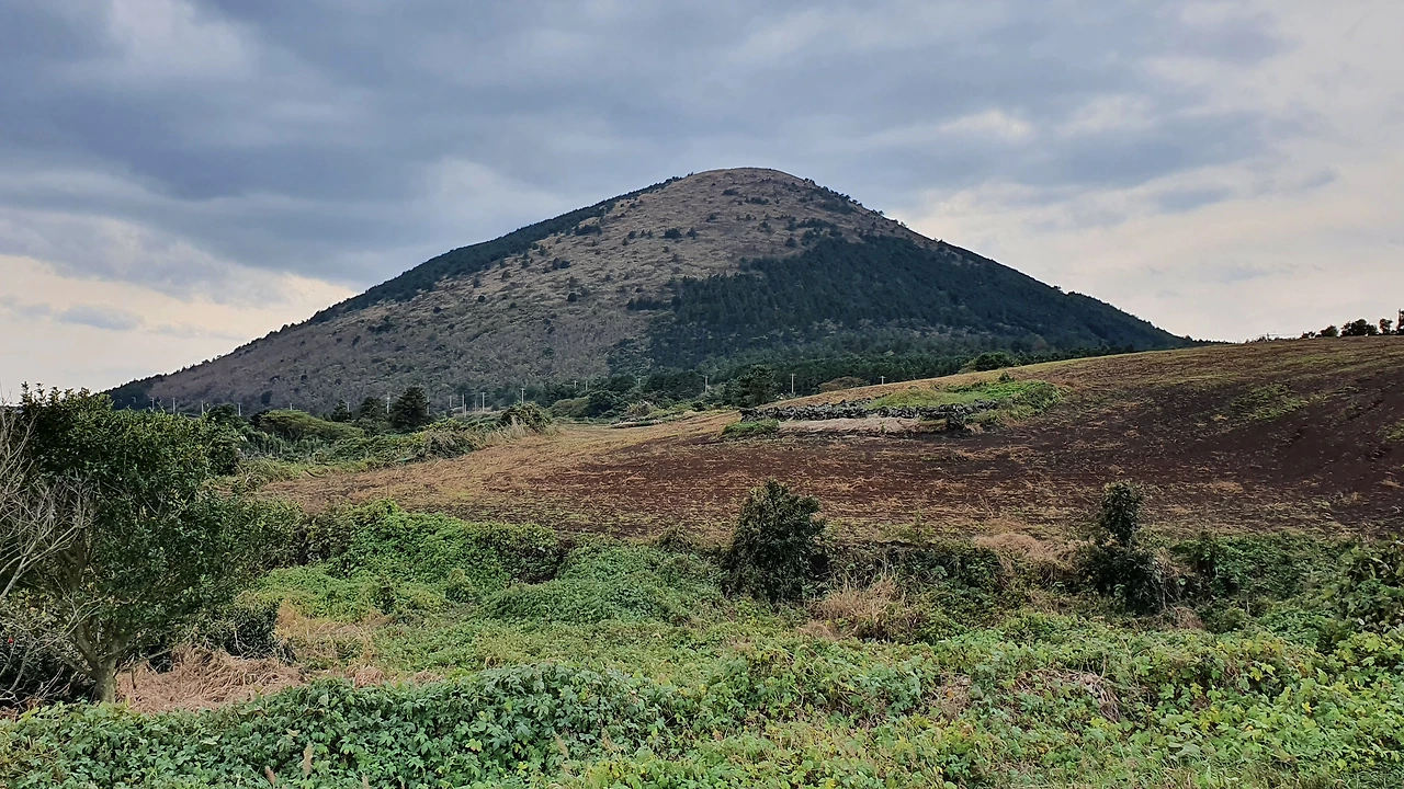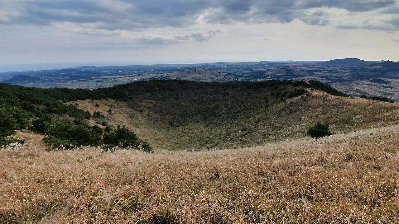 멀리 한라산이 아스라하게 보였다. 한라산은 설문대할망이 낡은 치마에 흙을 담아 날라서 만들었고, 흙을 나를 때 치마의 터진 구멍으로 흘러내린 흙들이 쌓여 오름이 되었다고 한다. 다랑쉬오름은 흙이 너무 많이 쌓여 도드라져 보이자 그녀가 주먹으로 꼭대기를 ‘탁’ 쳐서 움푹하게 파였다고 한다. 그런가? 다랑쉬오름의 능선이 예쁜 비너스의 가슴처럼 보인다면 정상에서 내려다본 화구는 우아한 와인 잔처럼 보였다. 어쩌면 설문대할망은 무심히 주먹으로 내리친 것이 아니라 도자기를 빚듯 정성을 들여 다랑쉬오름을 만들었는지도 모르겠다.