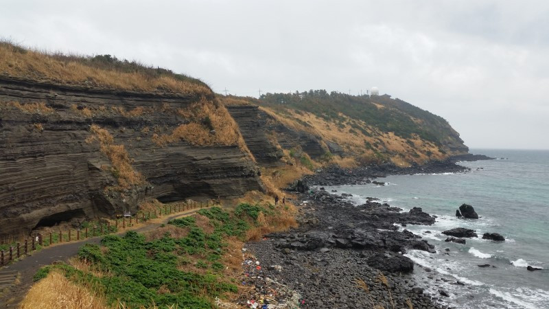 이런, 이런, 이런! 이렇게 멋진 길을 두고 우회하려 했다니. 생이기정 바당길에서 내려다본 바다는 환상적이었다. 이곳에는 가마우지와 같은 바닷새가 서식하는 곳으로 생이는 ‘새’라는 뜻의 제주방언이고 기정은 ‘절벽’이라는 방언으로 생이기정 바당길은 ‘새가 사는 절벽 바닷길’이라는 뜻이란다. 맑은 날씨였더라면 하루 종일 바다만 바라보고 있어도 지루하지 않을 것 같은 멋진 곳이었다.