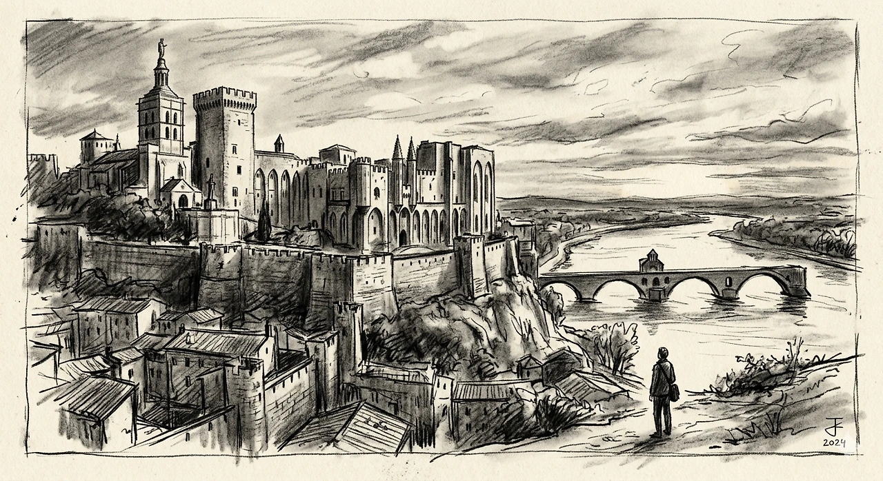 아비뇽 교황청의 성벽 앞에 서면 압도적인 수직의 견고함에 숨이 턱 막힌다. 14세기의 권위가 응축된 이 거대한 석조 요새는 하늘을 향해 오만하게 솟아 있으나, 그 내면은 고립된 자들의 처연한 유배지일 뿐이다. 중력에 저항하며 높게 쌓아 올린 성벽은 로마로 돌아가지 못한 교황들의 해묵은 향수를 가두는 거대한 감옥이었고, 그 위로 휘몰아치는 미스트랄은 차가운 석재 사이를 파고들며 닿지 못할 곳을 향한 탄식을 뱉어낸다. 높이 오를수록 고독은 깊어지고, 견고할수록 단절은 선명해진다.