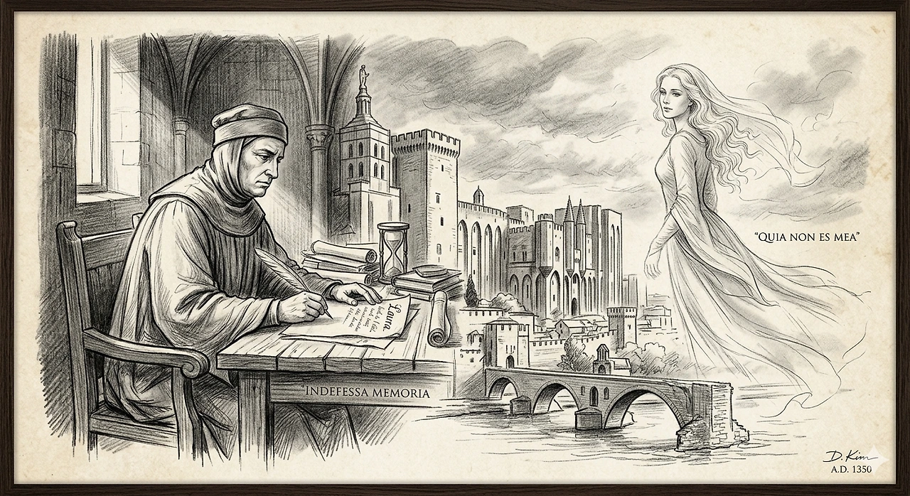1327년의 어느 봄날, 아비뇽의 한 성당에서 페트라르카는 라우라를 마주쳤다. 그 짧은 시선은 시인의 심장에 박혀 평생을 뒤흔드는 운명이 되었다. 안타까운 것은 운명 같은 이 사랑이 끊어진 다리처럼 서로에게 닿지 못했다는 사실이다. 라우라가 유부녀였기 때문이다. 중세의 엄격한 윤리는 유부녀에게 사랑을 고백하거나 관계를 맺지 못하게 했다. 그런데도 페트라르카는 높고 차가운 교황청의 복도를 거닐며 강 너머의 라우라를 향해 300편의 소네트를 썼다.