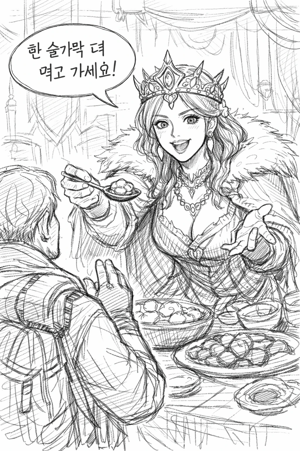 “가기 전에 카술레 한 숟가락 더 뜨고 가시오, 이방인 양반.”