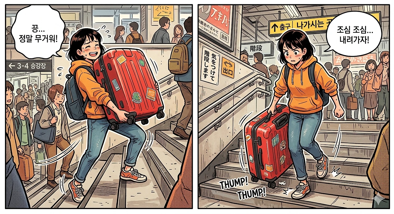 다시 사무실로 돌아갔다. 계단을 오르내리며, 커다란 캐리어가 내 인생의 무게처럼 느껴졌다. 이쯤 되면 여행이 아니라 체력 단련이다.