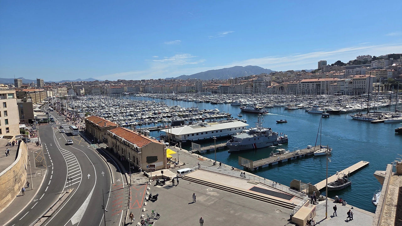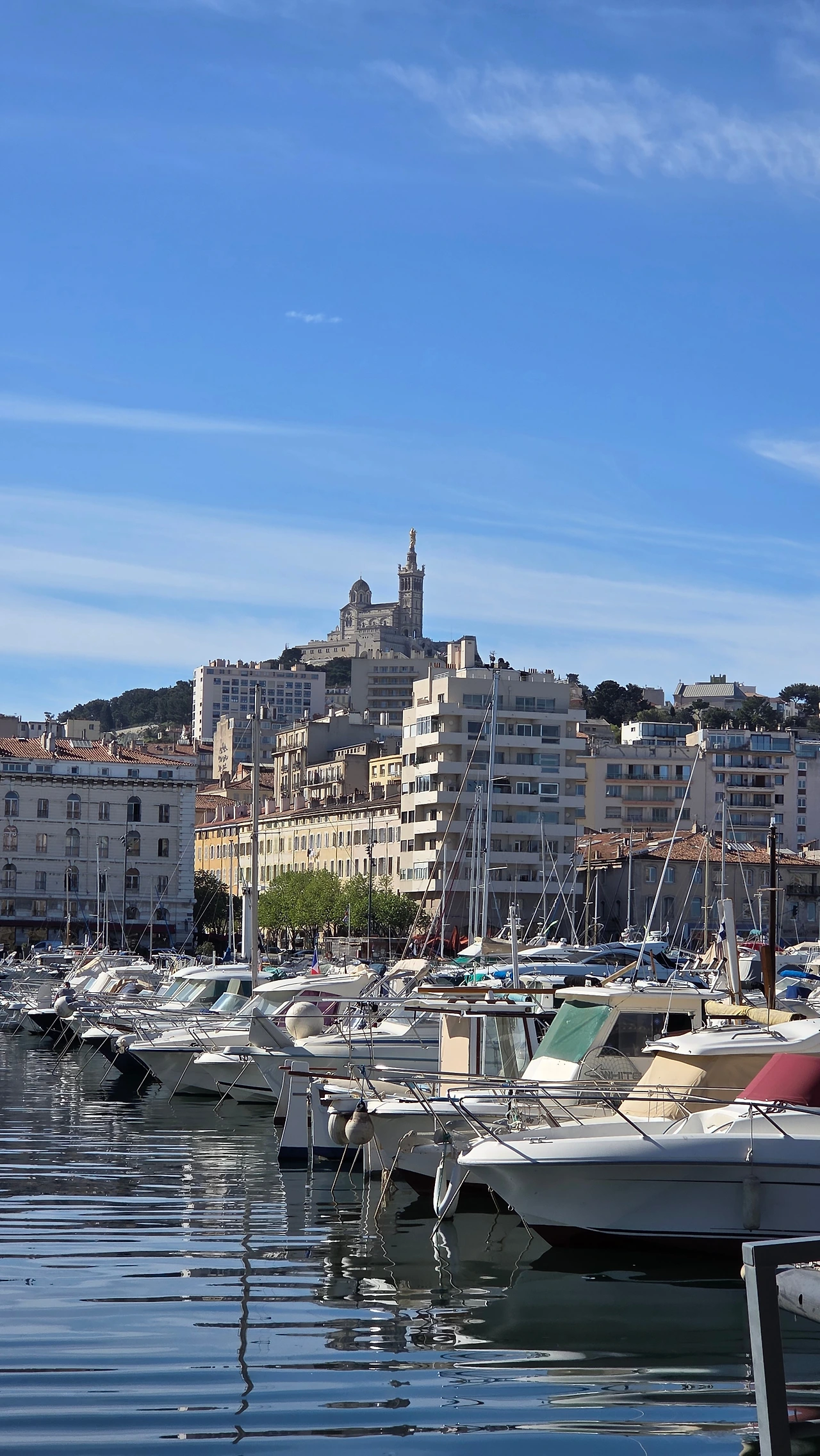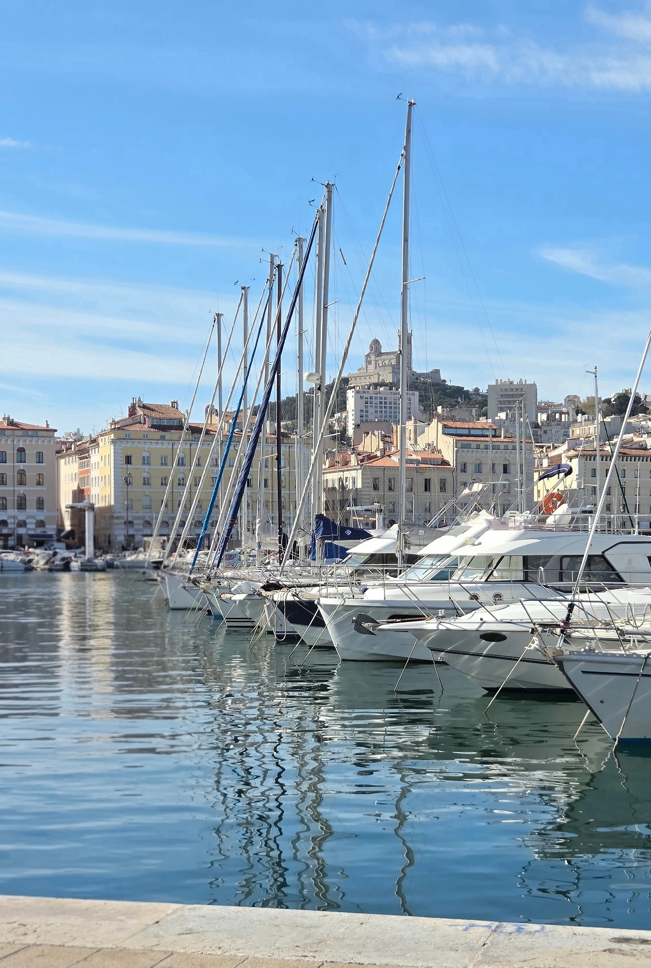 비릿한 바다 내음이 섞인 바람을 따라 도착한 구 항구(Vieux Port)는 그야말로 반전의 무대였다. 지중해 특유의 파란 하늘은 마치 누군가 코발트블루 물감을 쏟아부은 듯 선명했고, 그 아래 펼쳐진 바다는 하늘과 닮은 듯하면서도 윤슬을 머금어 또 다른 깊이를 뽐내고 있었다. 역에서의 찌푸린 미간이 활짝 펴지며 입가에 경탄이 새어 나왔습니다. "아, 역시 마르세유구나!"