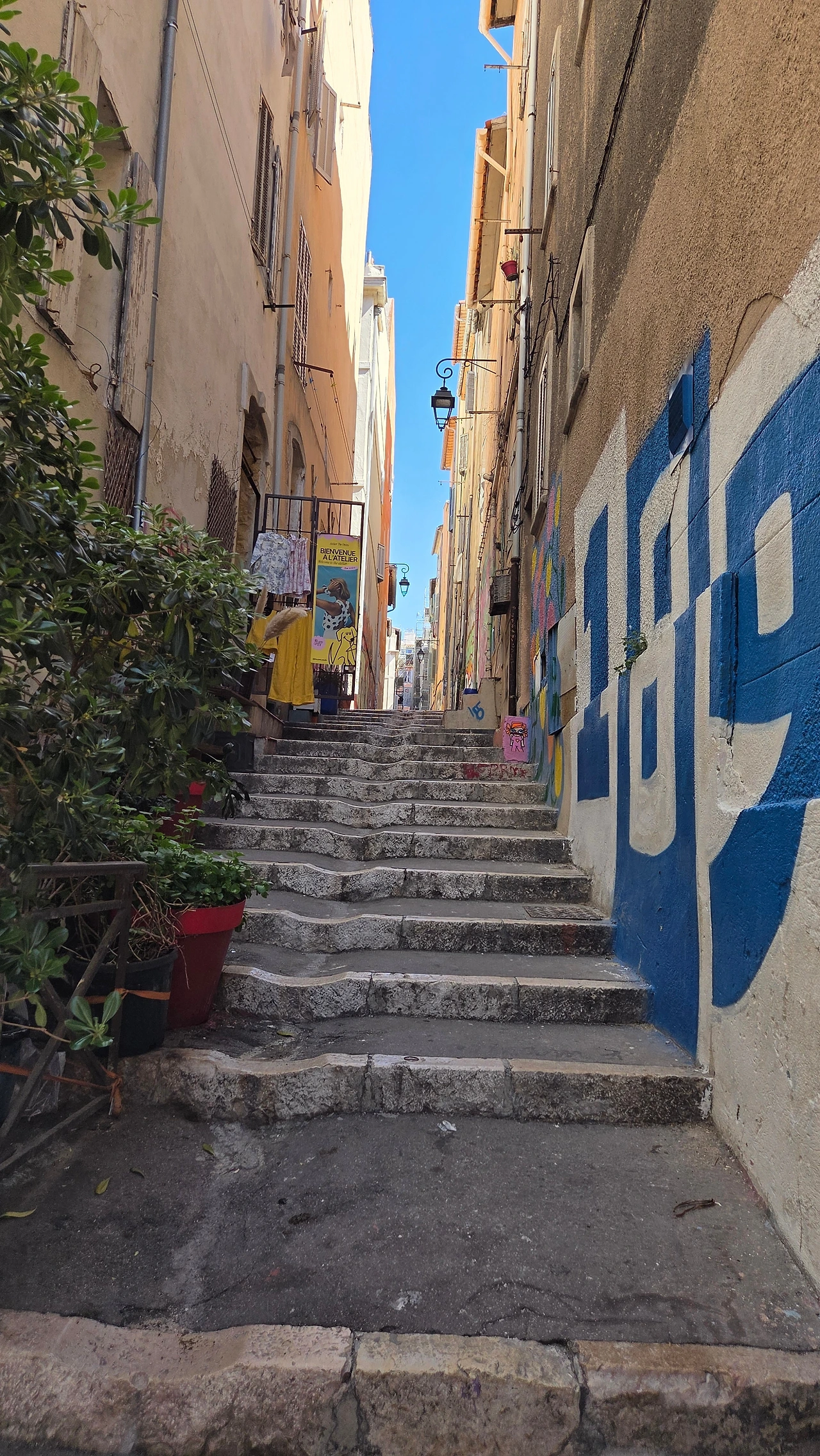 마르세유에서 가장 오래된 동네라는 빠니에는 걷는 것만으로도 입가에 미소가 지어지는 곳이다. 좁고 구불구불한 골목마다 알록달록한 벽화와 화분들이 놓여 있고, 그 사이를 비추는 햇살은 세상에서 가장 다정한 조명 같기도 했다. 길을 걷다 마주치는 풍경들은 더욱 정겹다. 길모퉁이에서 주변 시선은 아랑곳하지 않고 거침없이 애정표현을 하는 연인들의 모습은, 이곳이 사랑의 열정만큼은 지중해의 태양보다 뜨거운 곳임을 실감케 한다. 그 옆으로 들리는 아이들의 천진난만한 웃음소리는 지중해의 봄날을 더욱 따뜻하게 색칠해 주었다. 무뚝뚝해 보이던 사람들도 아이들의 장난기 어린 표정 앞에서는 무장해제되어버리는, 그 무해한 평화가 여행자의 마음을 몽글몽글하게 만들고 있었다.