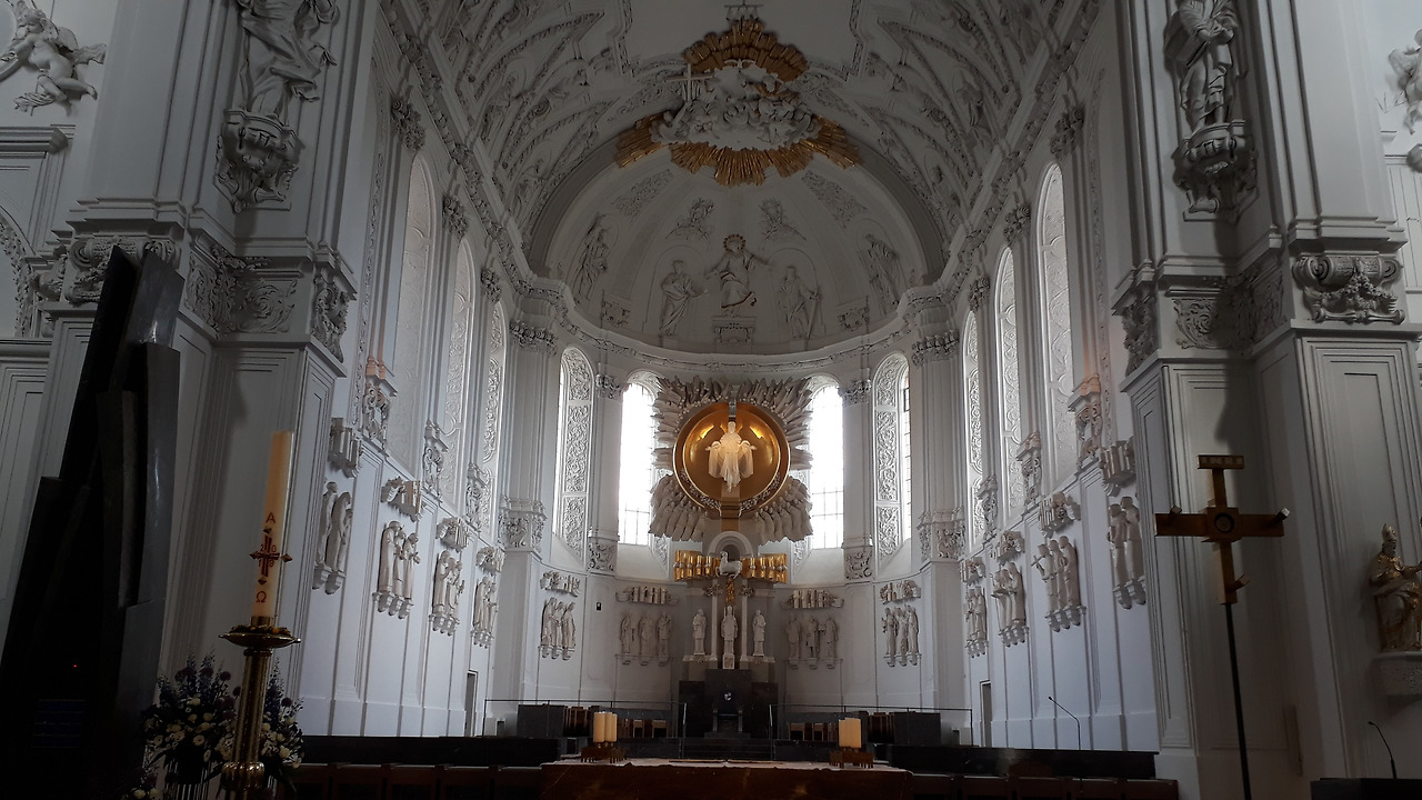 다음날 마르크트 광장으로 갔다. 주변에 뷔르츠부르크 대성당, Neu Münster, 돔 세인트 킬리안 대성당(Dom St.Kilian), Domschatz, Am Dom박물관 및 성모 성당(Marienkapelle) 등이 몰려 있는 곳이었다. 여행을 계획할 때 뷔르츠부르크 궁과 함께 많은 기대를 했던 곳이다. 맨 먼저 노이 뮌스터 교회로 갔다. 분홍색 외관이 아름답고 인상적이었다. 안으로 들어서니 하얀색 벽면에 거대한 천정 프레스코화가 사람을 압도했다. 독일의 알려진 교회 가운데 이런 형식이 많다는 것을 나중에 알았지만 처음 보았을 때는 대단히 인상적이었다.