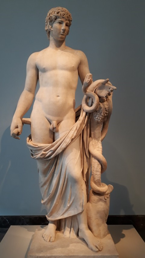 뱀이 휘감은 지팡이를 지닌 남자가 아스클레피우스라면 뱀을 양손에 쥐고 좋아하는 이 아이는 누구일까?