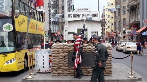 찰리의 체크포인트. 서로 탱크를 배치하고 살벌하게 대치했던 자리가 미군 복장을 한 두 남자가 코믹한 어투와 몸짓으로 관광객들과 기념사진을 찍으며 돈을 버는 장소로 변했다.