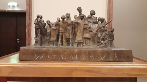 현재는 베를린 시청으로 사용되고 있고 분단 시절에는 동베를린의 시청이었던 <붉은 시청사>. 그곳에 작지만 의미 있는 청동 조각품이 있다. 조각상의 받침면에는 "Wir sind ein Volk. [우리는 하나의 민족이다]"라는 말이 새겨 있다. 통일이 된 후 동서독 국민이 서로 얼싸안고 한 말이다. 이 말에 앞서 동독 시민들은 "Wir sind das Volk. [우리가 민중이다, (우리가 나라의 주인인 민중이다)]"라는 구호를 외쳤다. 통일이 되기 전 동독에서 시민운동이 강하게 일어났는데 그때 외친 구호였다고 한다. 동독 시민들 스스로가 역사의 주체임을 강하게 인식하게 한 이 구호가 독일 통일의 불을 댕긴 셈이다.