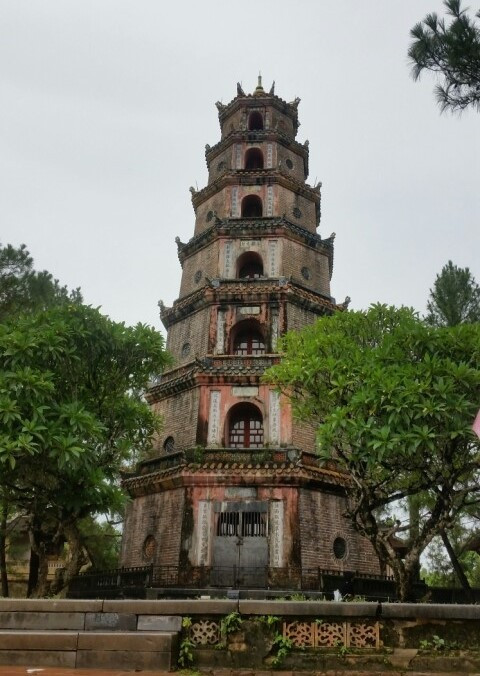 빗줄기가 점점 굵어졌다. 향강(香江, Perfume River)이 내려다 보이는 언덕 위에 위치한 티엔무 탑(天姥塔, Thien Mu Pagoda)으로 이동했다. 1601년에 건립되었으며 입구에는 19세기에 세워진 8각 7층 석탑이 있는데, 높이가 21m가 넘는 이 탑은 베트남을 대표하는 건축물들 중 하나로 꼽히기도 한다. 탑의 양 옆으로는 두 개의 정자가 있는데 그중 하나에는 큰 거북의 등 위에 세워진 비석이, 다른 하나에는 2톤이 넘는 거대한 종이 자리 잡고 있다. 티엔무 탑을 지나 안쪽으로 들어가면 영모사(靈姥寺)가 있다.