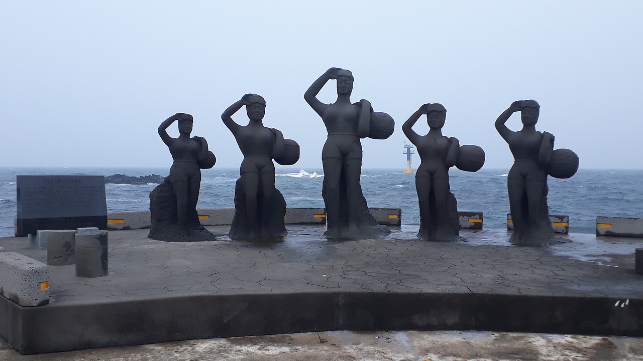 요 바당에, 요 물에 들언/ 좀복, 구젱기, 고득하게 잡아당/ 혼 푼, 두 푼, 모이단 보난/ 서방님 술깝에 몬딱 들어 감쩌.(남편을 원망하는 해녀의 노래)