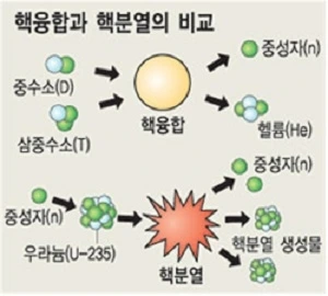 "핵융합" 에너지는 핵분열과는 반대입니다. 원자 하나가 반으로 쪼개지는 게 아니라, 원자 두 개가 뭉쳐서 다른 원소를 만드는 건데요.