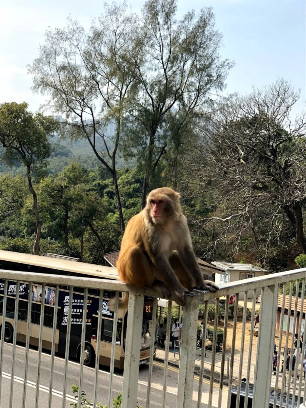 그래서 이번 깜산 하이킹은 흥미진진한 경험이었다. 깜산은 홍콩 영토 중 신계(New Territories)에 위치한 산으로, 쇠 금 자에 산 산 자를 쓴 "금산"이다. 여기 이글 네스트 네이처 트레일이라는 곳이 있어 가 본 건데, 독수리 둥지는커녕 원숭이만 잔뜩 보고 왔다. 등산로 입구부터 진을 친 원숭이는 사람들을 툭툭 쳐서 과일과 땅콩을 얻어먹기도 하고, 지나가는 사람들에게 시비를 걸기도 한다.