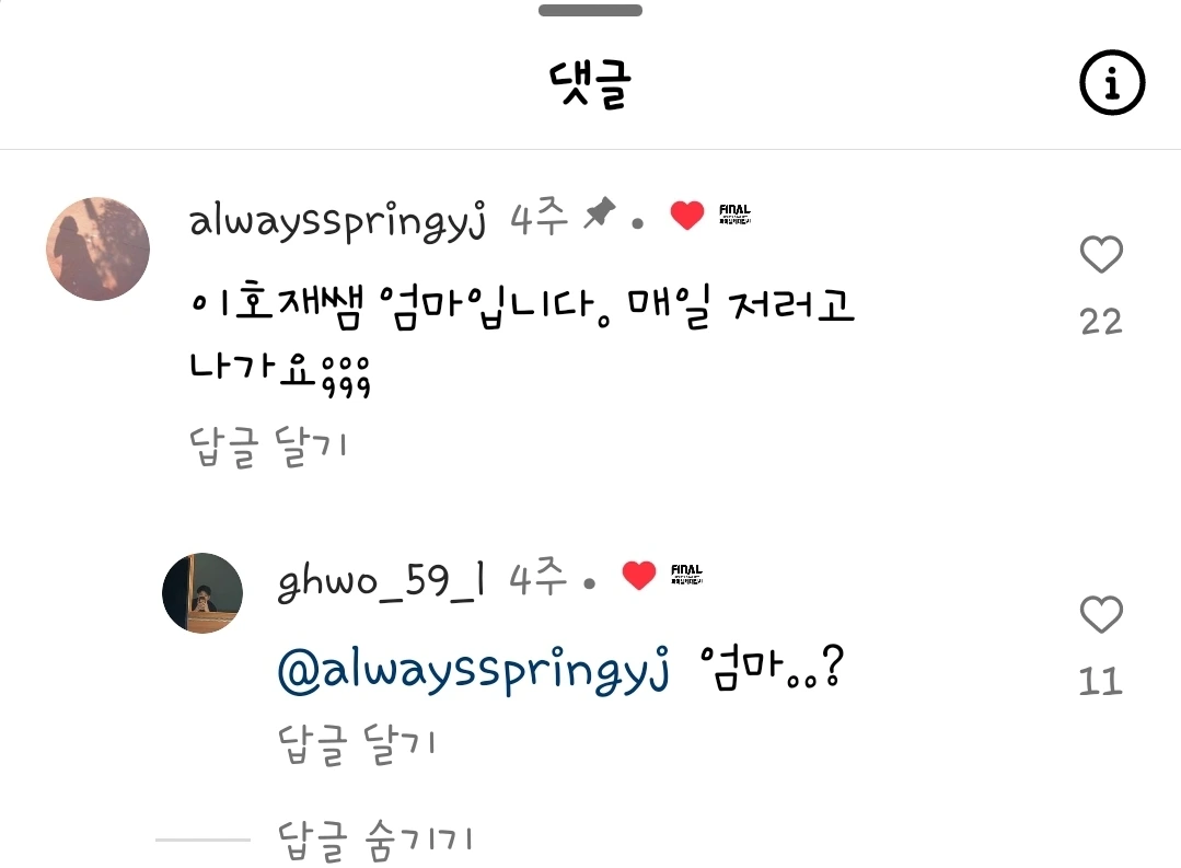 "이호재쌤 엄마입니다. 매일 저러고 나가요;;;"