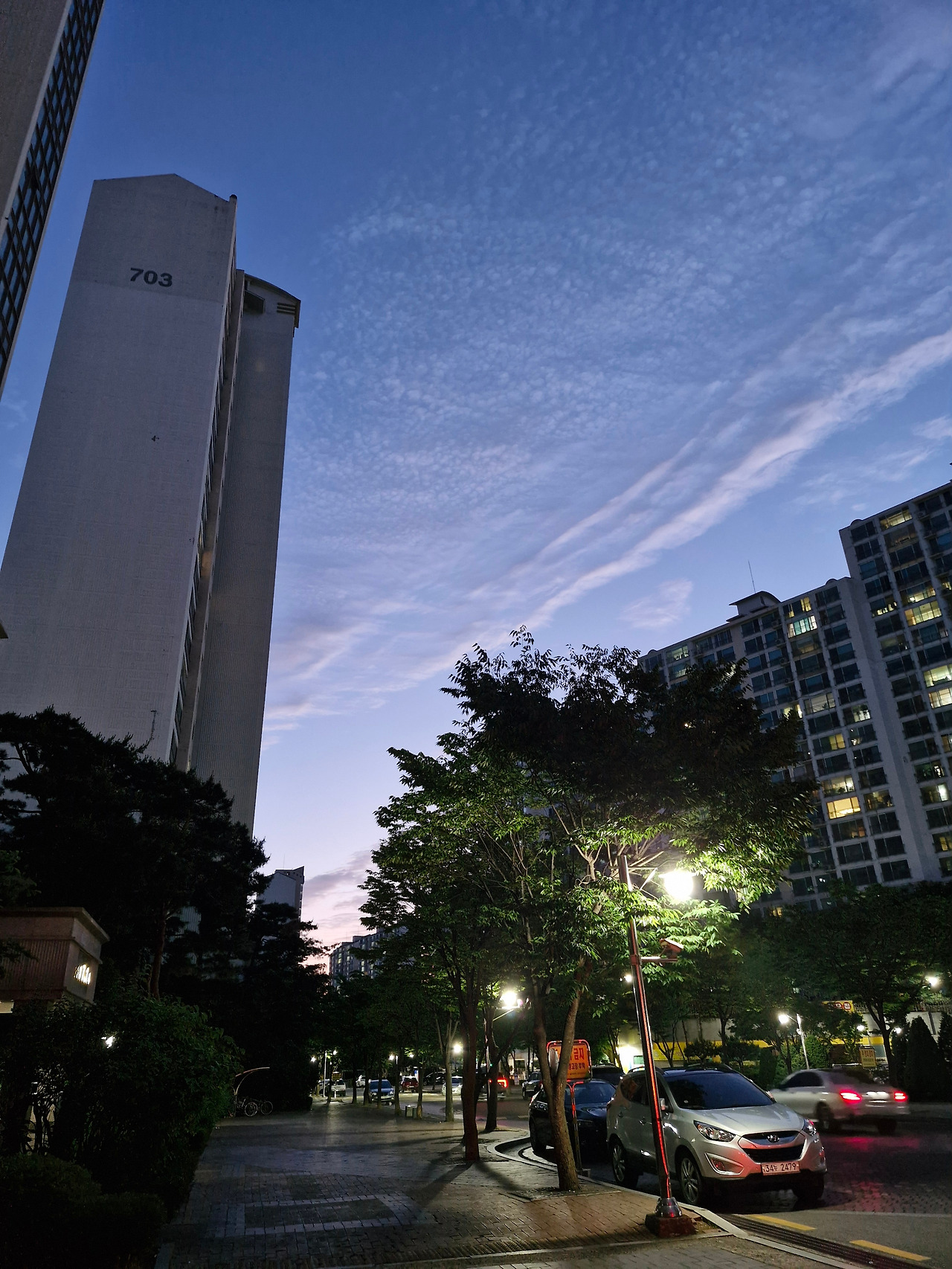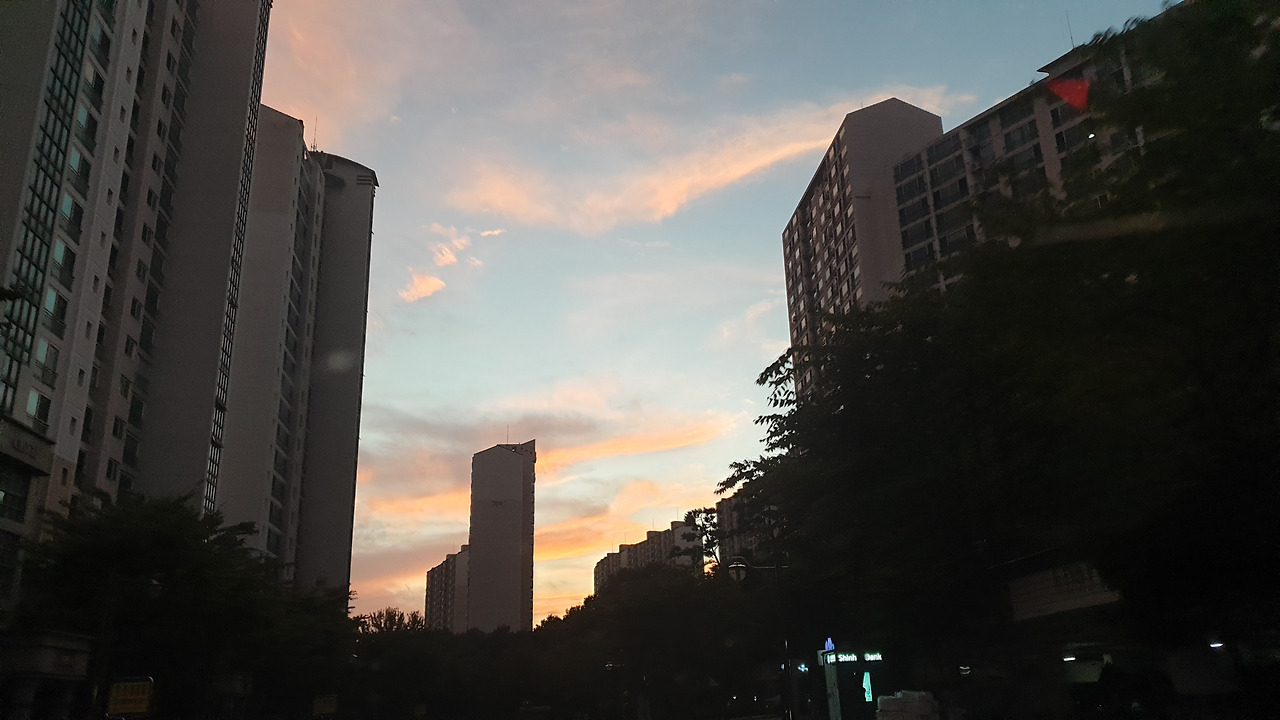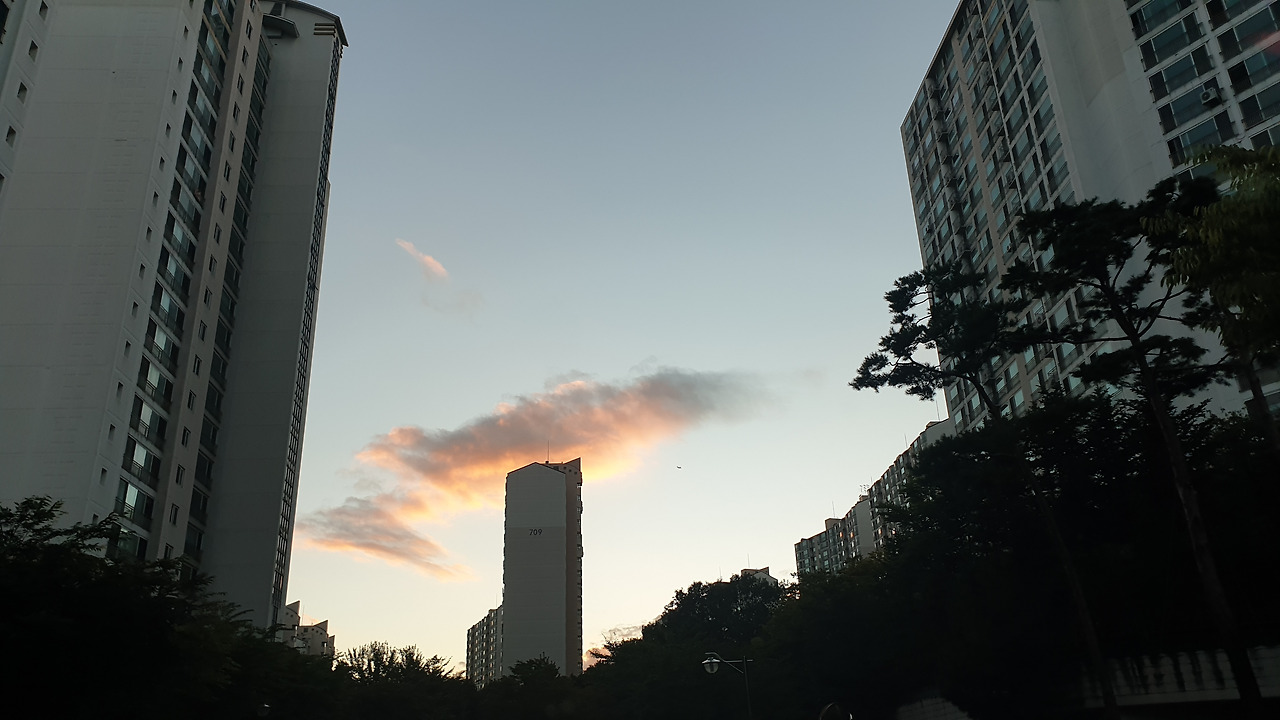2021년에는 석양 맛집이라고 입소문 난 집 근처 대학 캠퍼스에서 찍은 사진도 보인다. 시간을 못 맞출까 봐 서둘렀던 기억이 선명하다. 하늘이 붉게 물드는 걸 감지하고 베란다로 뛰쳐나가 찍은 석양도 있다. 가장 많은 건, 아파트 단지에 들어서서 주차장으로 진입하기까지의 100m 남짓한 도로에서 바라보는 하늘이다. 십여 년간 매일 같은 곳을 지나갔으면서, 왜였을까. 왜 2020년부터 그 길, 그 풍경이 눈에 들어왔을까.