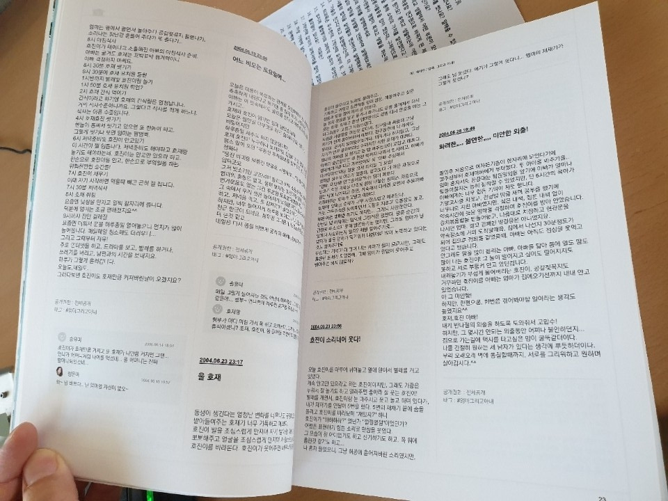 그런데 또 몇 년 전부터 싸이월드 폐쇄에 대한 소식이 간간이 들려오기 시작했다. 맘이 조급해졌다. 그 많은 기록들을 어찌할 것인가... 작년 초 싸이월드에서 '싸이북' 만들기를 해준다는 것을 알게 되었고 한 권에 10만 원이 훌쩍 넘는 금액이었지만 눈을 질끈 감고 만들어버렸다. 총 400페이지까지만 만들 수 있기에 뺄 건 빼고 꼭 넣어야 할 것들만 추려서 330페이지 정도 분량의 책 한 권을 완성했다. 그때는 그저 신기하고 재미있다는 생각뿐이었는데 오늘은 다행이고 다행이고 천만다행이라는 생각이 든다.