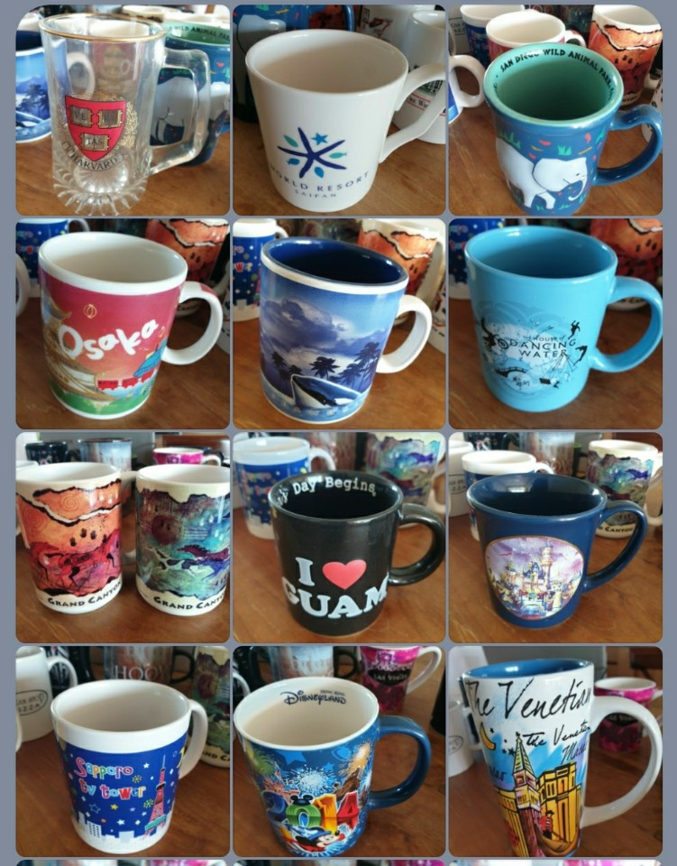 마흔 개의 컵 중 30개 정도는 여행지에서 구입해온 것들이다. 30개국을 돌아다닌 것은 아니고, 여행지 한 군데에서 들렀던 명소마다 사모은 것이 그리됐다. 미국에서 산 것이 대부분이고 그 외 마카오, 홍콩, 일본, 사이판, 괌 정도가 몇 개 있다. 인형, 우표, 티스푼을 수집하는 다른 이들과 같은 이유로 여행의 전리품처럼 모으게 됐다. 언젠가 커피숍을 하게 된다면 벽 한쪽면을 장식해도 좋으리라 생각했던 적도 있다. 그때가 되더라도 컵으로 사용할 생각은 하지 않았다. 그저 장식품으로서의 컵.