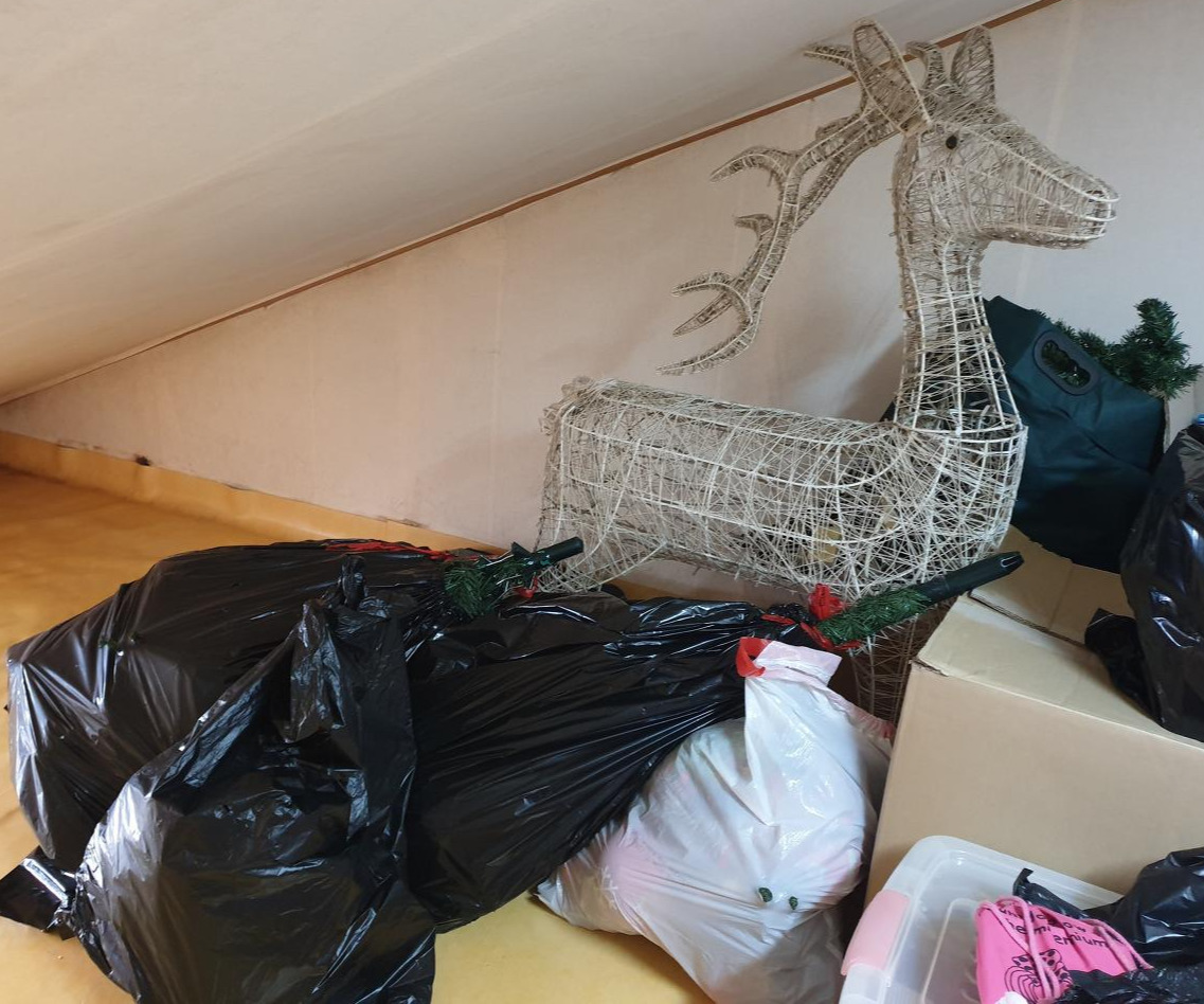 밤에만 봐줄만 하던 트리와 사슴... 현재는 다락방에 찌그러져 있다...
