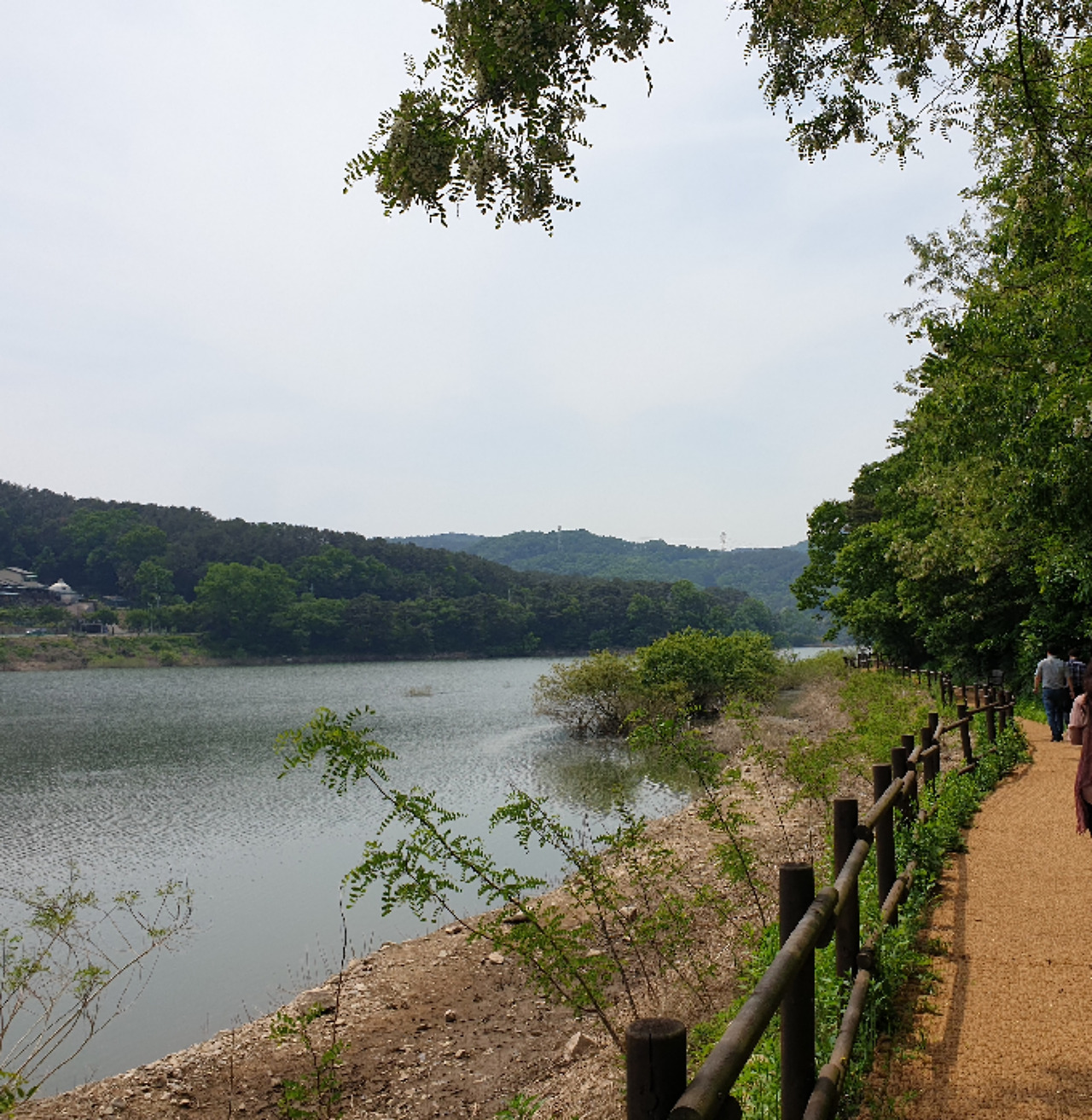 가는 길에 줄지어 피어있는 아카시 꽃, 꽃가루가 눈처럼 날리는 호숫가, 컨설팅 장소 근처 호수를 따라 난 데크를 걸을 때 발견한 희한한 나무, 비를 흠뻑 맞은 나뭇잎, 길바닥에 피어있는 이름 모를 꽃들...