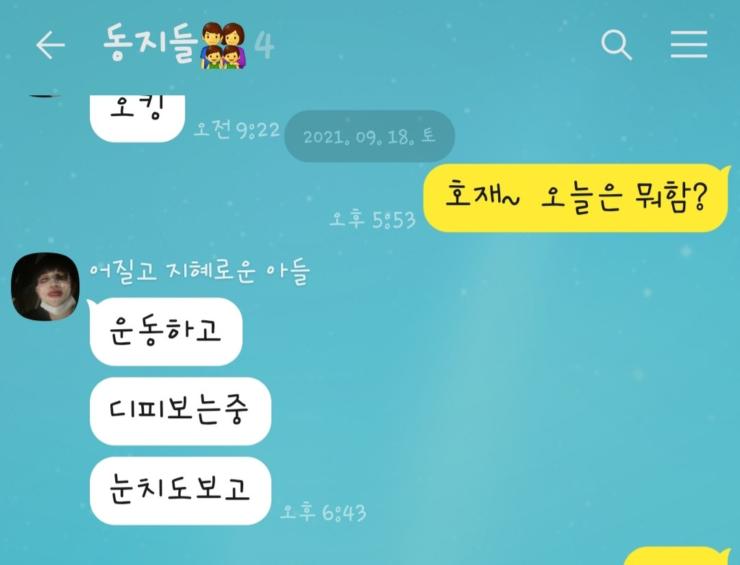 "오늘은 뭐해?" "운동하고 디피 보는 중 눈치도 보고"
