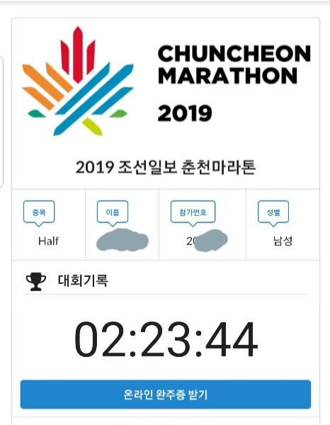 영화 때문이었는지, 가장 돈이 적게 들고 몸뚱이 하나만 있으면 할 수 있는 운동이라 그랬는지, 남편이 선택한 취미생활은 '마라톤'이었다. 3년 전쯤부터 시작해 작년과 올봄에는 10km 대회를 나가더니 오늘 춘천마라톤에서는 호기롭게