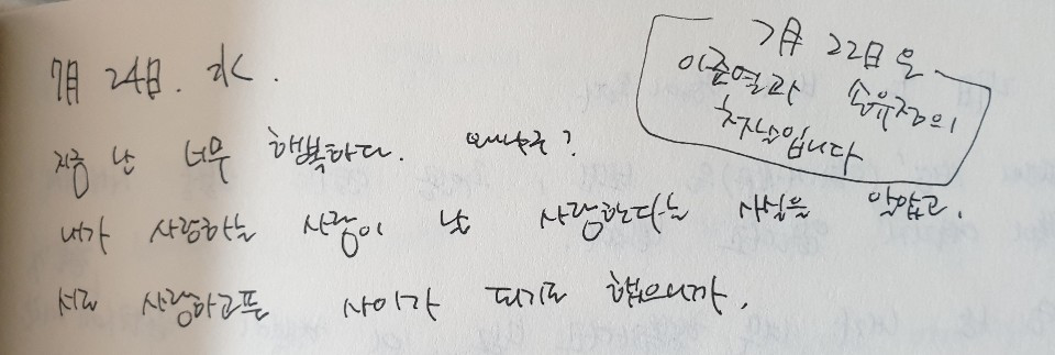 연애당시의 일기. 우리 아이도 사랑을 하게 되었다는 건, 감사한 일이다만...