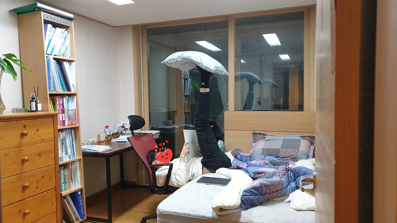 집중력을 최대한으로 끌어올리는 자세가 아닐까... 믿어봅니다.(아이의 동의를 얻어 올린 사진입니다.)