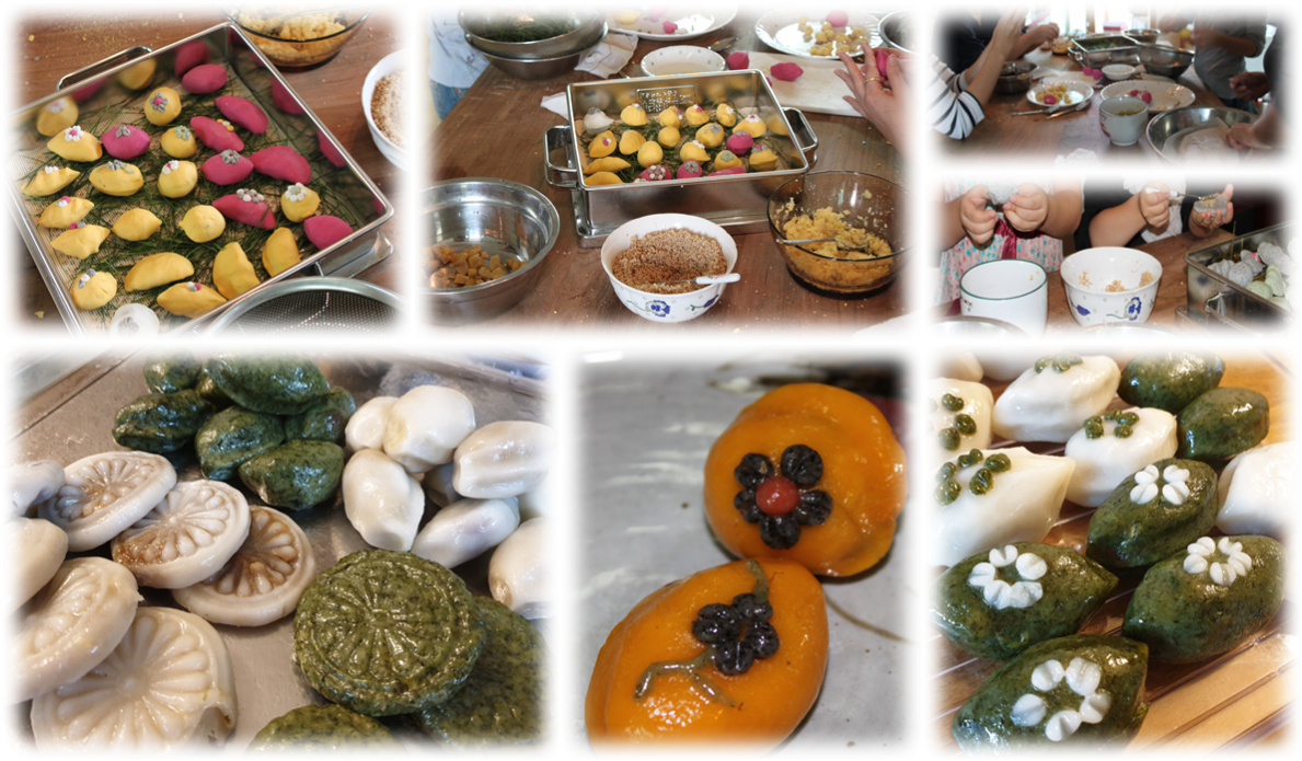사진을 찾아봅니다. 예쁜 꽃송편부터 호박 모양, 나뭇잎 모양까지 다양합니다. 작년에는 떡 도장으로 납작하게 눌러 무늬를 넣은 송편을 만들었지요. 깨, 밤, 콩, 녹두 외에 초콜릿, 치즈를 넣었던 송편도 기억납니다. 아이들이 참 좋아했었죠. 손이 근질거리고 엉덩이가 들썩거립니다. 저쪽 방에서 자소서 쓰는 키보드 소리가 톡탁톡탁 들려오는데 제 마음은 속없이 두근거립니다.
