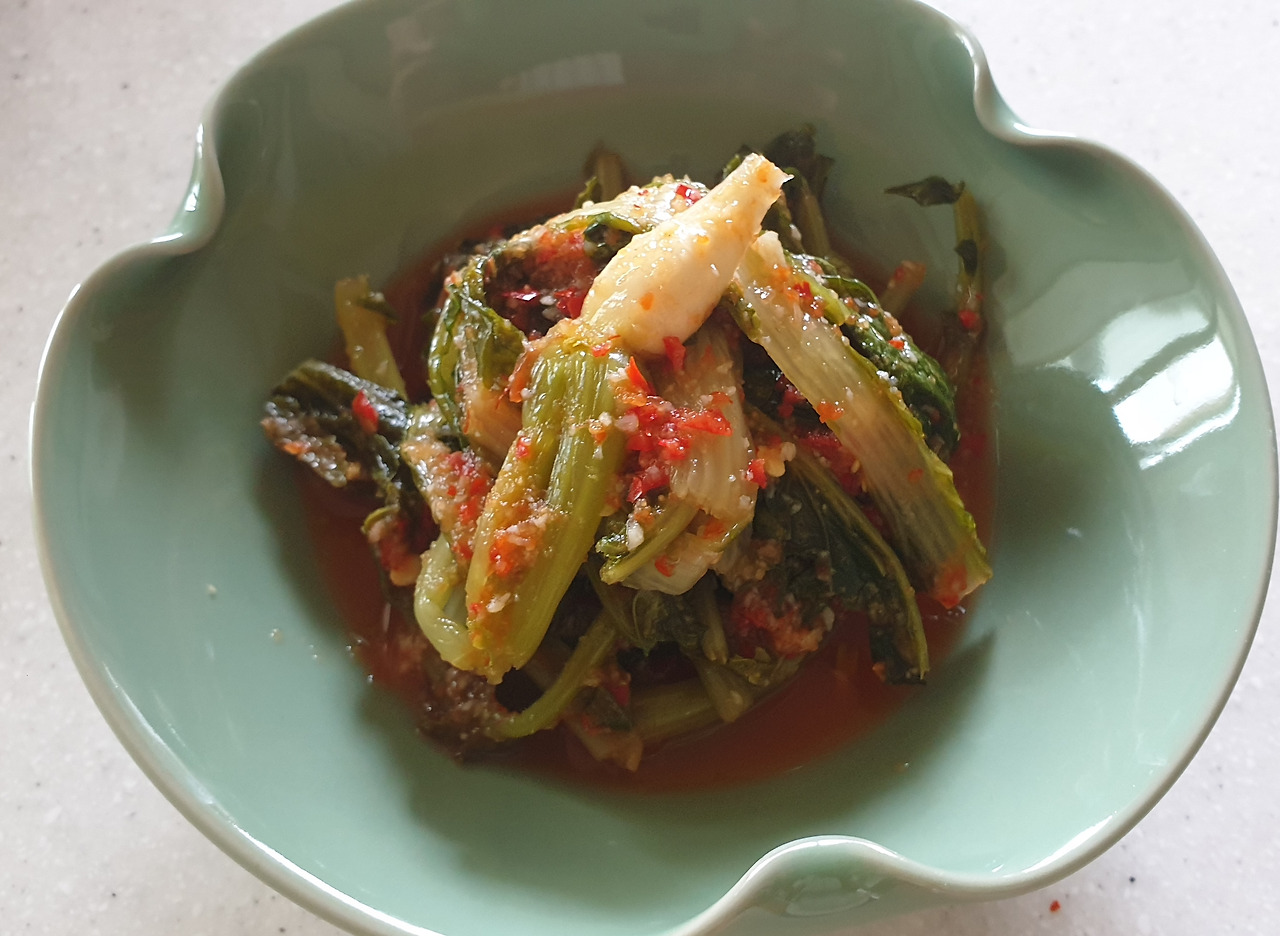 며칠 후 잘 익은 열무김치는 무릎수술로 입원 중이신 어머님께 조금, 열무를 나눠준 친구에게 조금 전해졌다. 벌레와 나와 어머님과 친구가 함께 나눠먹는 열무, 얼갈이라니...