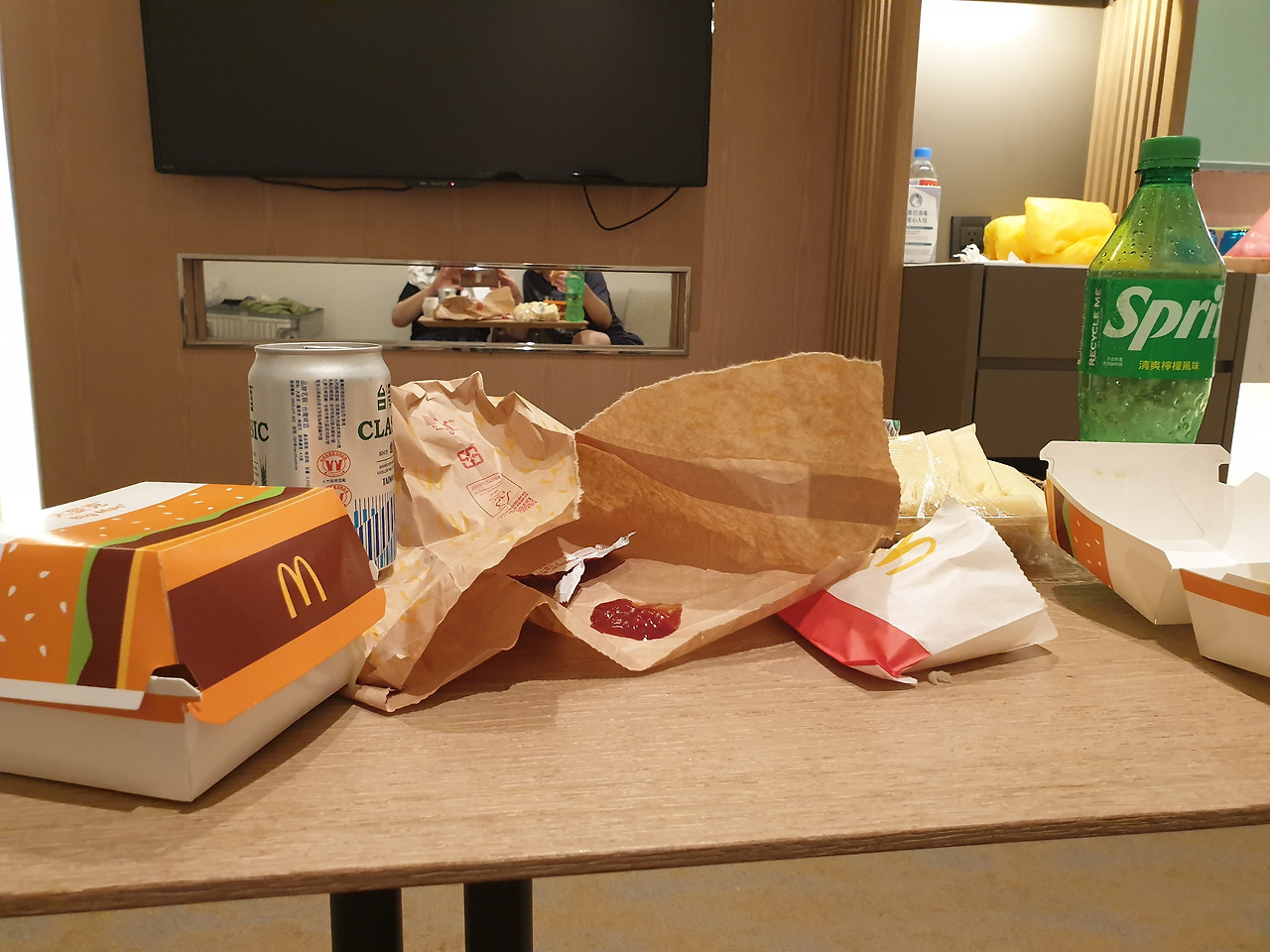 하루종일 곱창국수 하나와 카스텔라하나, 지파이 하나를 둘이 나눠 먹은 게 식사의 다였다. 뭐라도 든든히 먹어야 했기에 24시간 영업한다는 대형매장에 갔다. 완전 조리된 음식이 많아서 저녁으로 먹기 좋다는 후기를 읽었던 터였다. 있었다. 통닭도 있고 닭다리도 있고, 장어도 있었지만 아들과 나의 입맛을 땡기는 게 없었다. 결국 맥도널드 햄버거 두 개와 파인애플을 사들고 숙소로 돌아왔다.