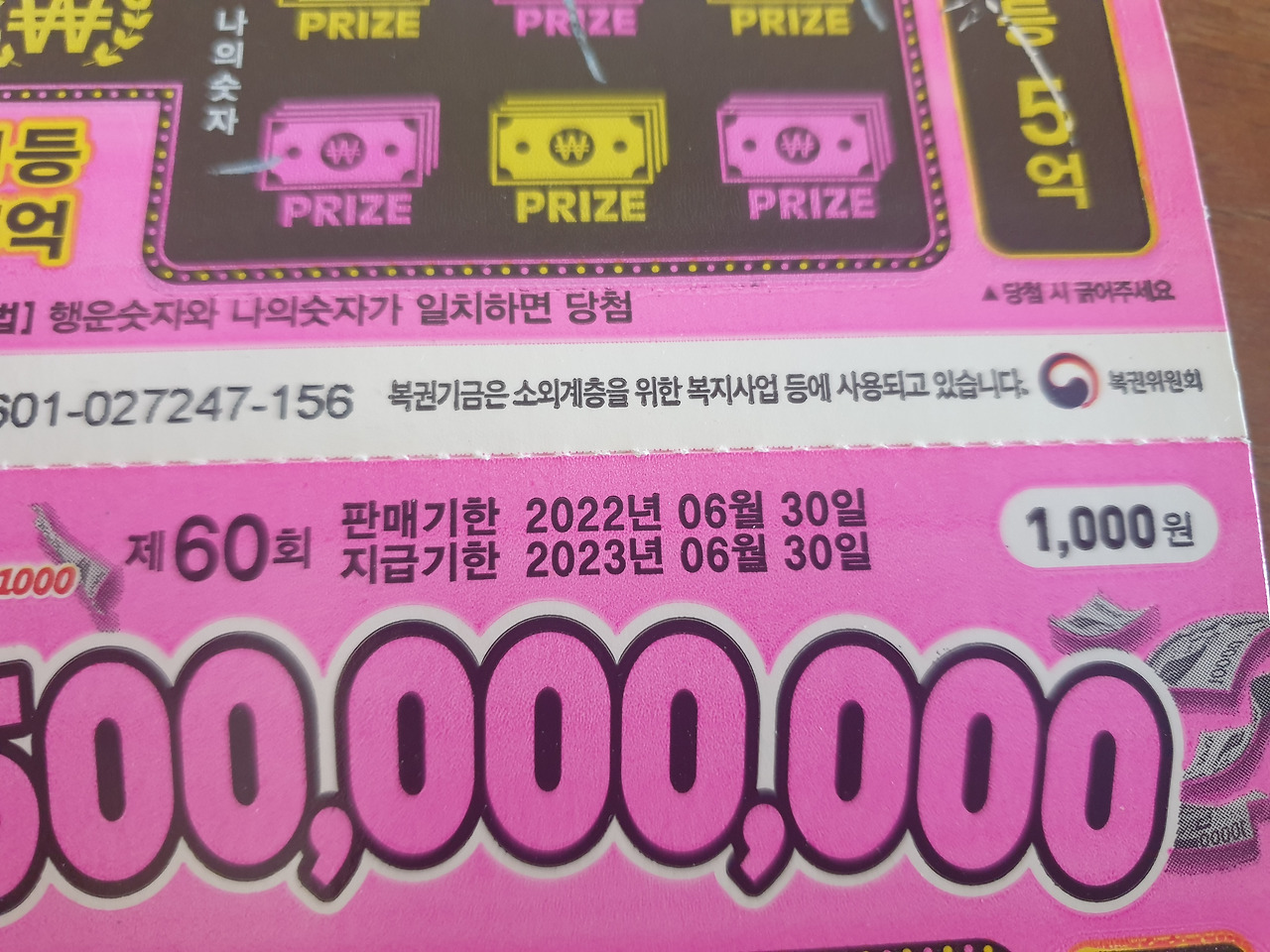 "주머니에 이게 있다?" 하면서 보여준 것은 천 원짜리 즉석복권 다섯 장이었다. 이리저리 살피는데 판매기한과 지급기한이 눈에 들어왔다.