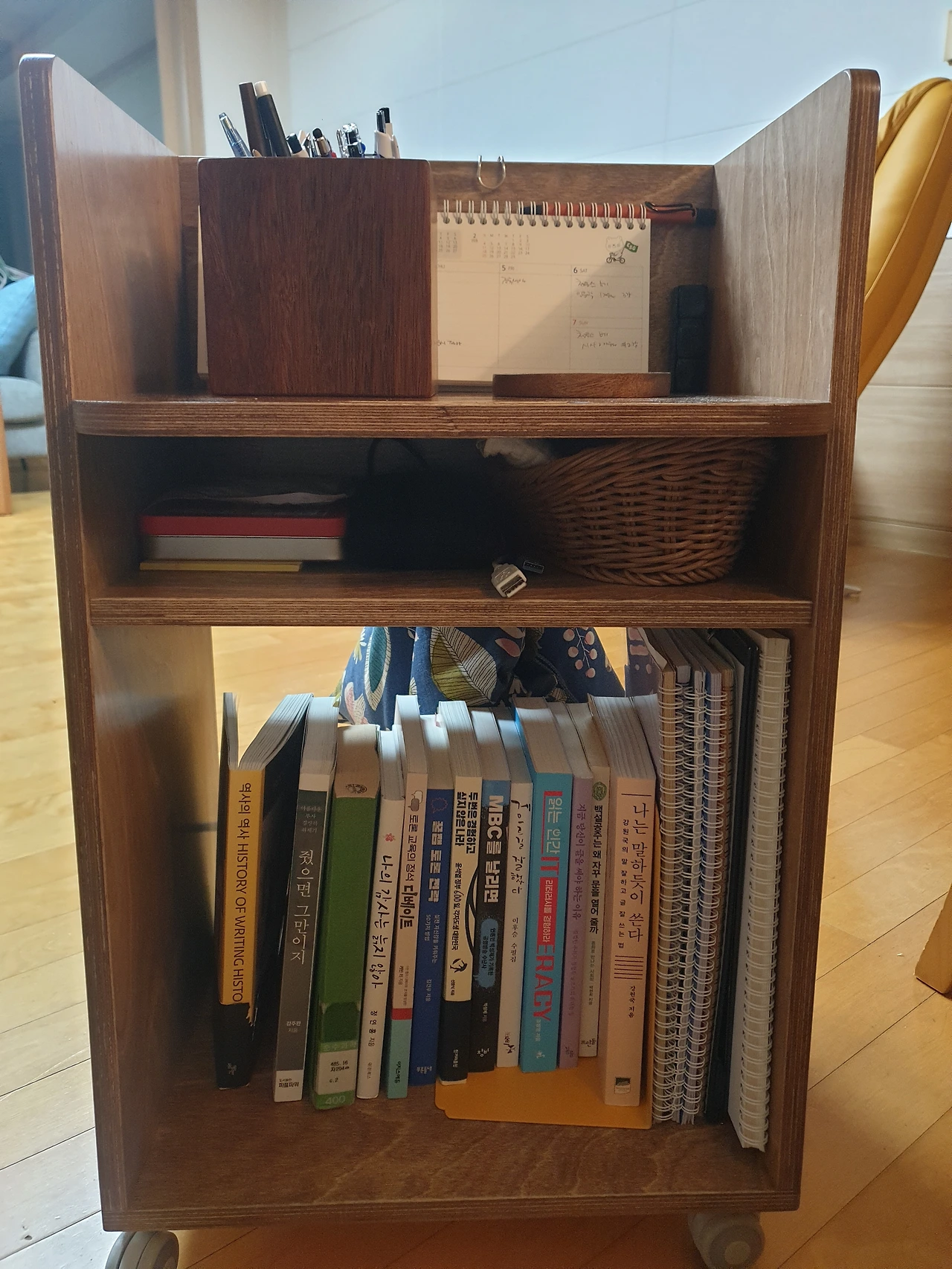 내 사무실의 가장 큰 장점은 이동 가능하다는 것이다. 식탁에서 아들 방으로, 아들 방에서 컴퓨터 방으로... 내가 이동하는 곳 어디든 온전히 나만의 사무실이 된다. 튼튼하지만 소리가 나지 않는 바퀴 덕분에 사무실이 여행 가방처럼 느껴진다. 일하러 가는 게 아니라 놀러 가는 것 같은 착각에 빠지기 십상이다. '이런 게 진정한 디지털 노마드족 아니겠는가 음하하하' 하며 이동식 사무실 장만의 기쁨을 만끽한다.