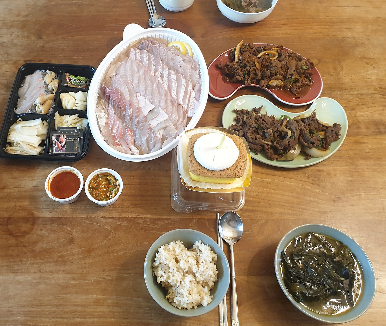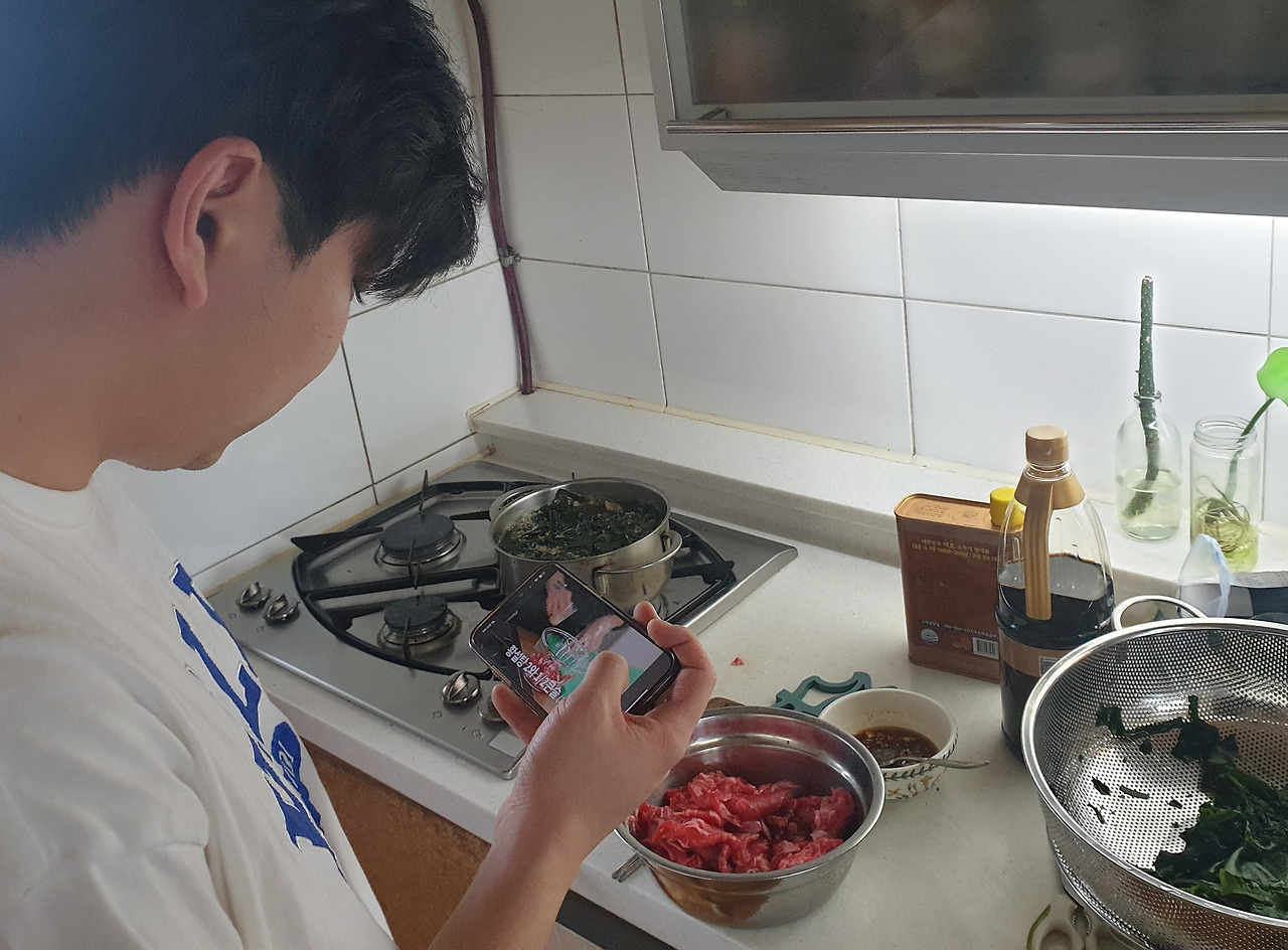 큰아들은 아침상 대신 점심상을 준비했다. 미역국과 불고기가 제법 근사한 맛을 냈다. 본인도 신기하고 자랑스러웠는지 사진을 찍어 친구들에게 자랑을 했다. 아들이 요리하는 동안 나는 방에서 나오지 않았다. 괜한 참견으로 김빠지게 하기 싫었기 때문이다. 국간장 대신 양조간장으로 간을 했지만 미역국은 깊었으며, 쪽파인 줄 알고 부추를 넣었다지만 불고기의 비주얼은 괜찮았다.