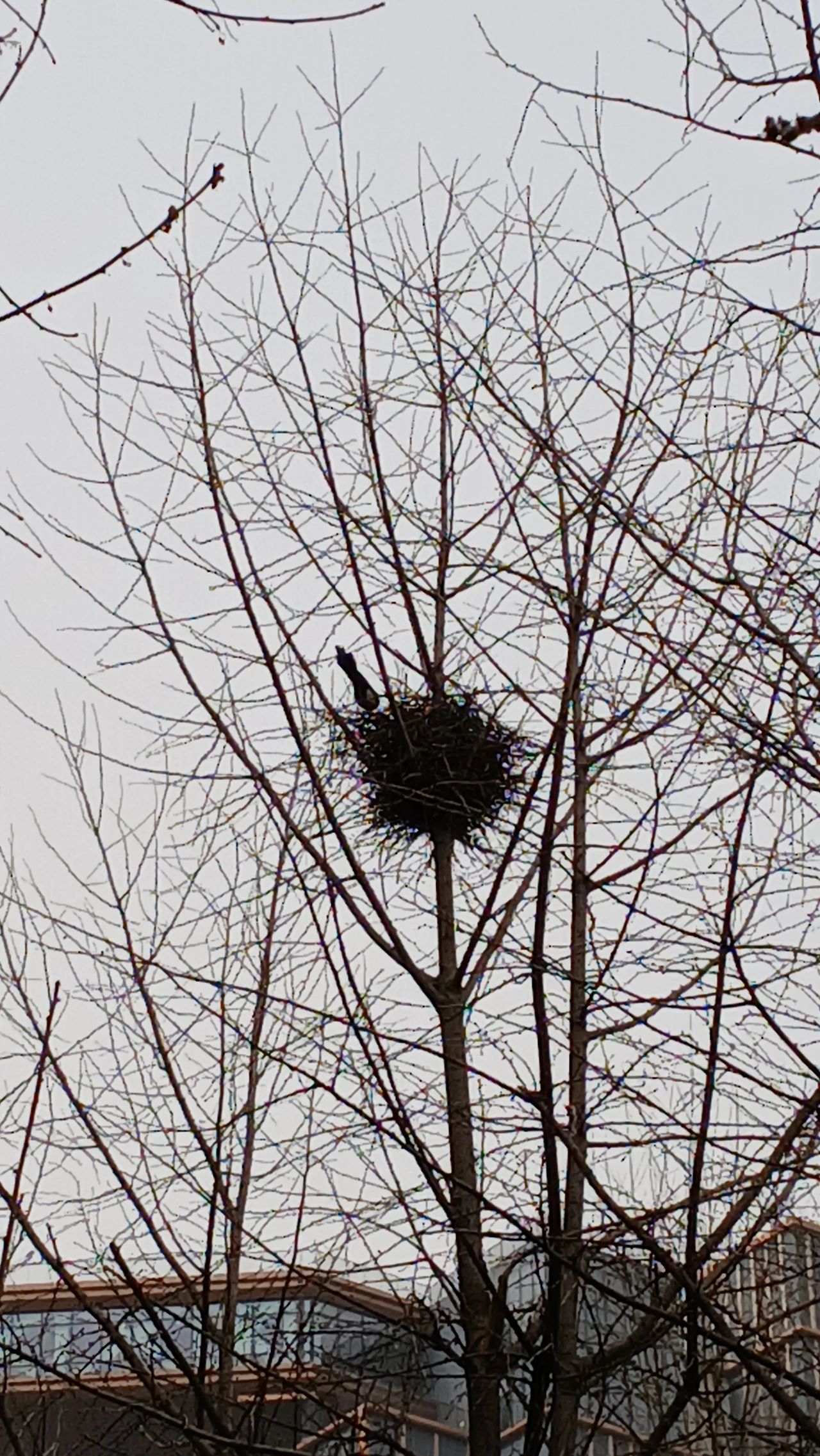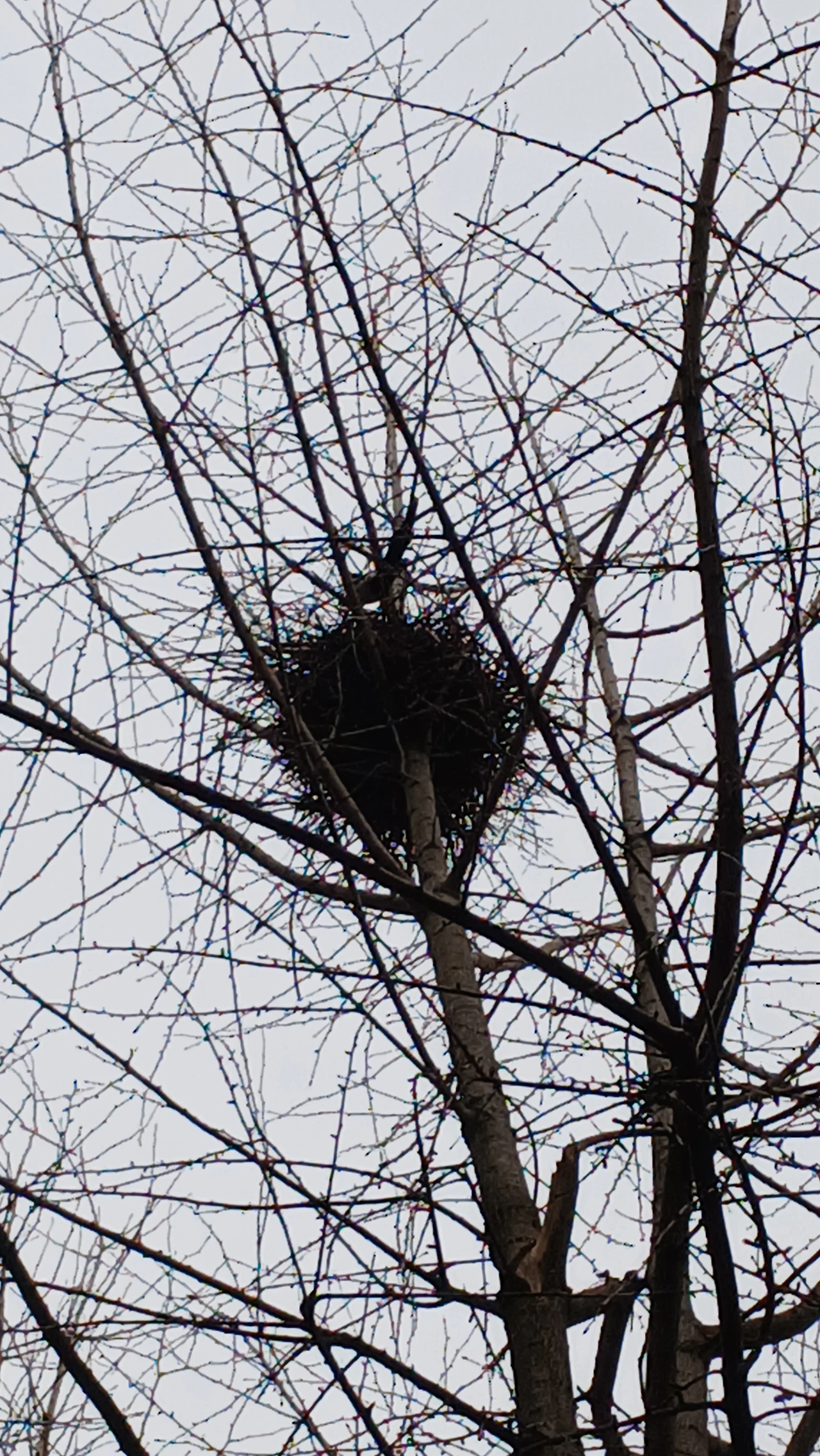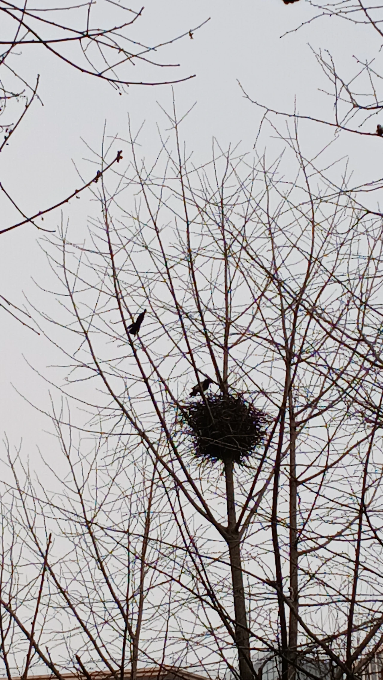 오전 내내 까치 한쌍이 나무들을 부지런히 오가며 한겨울을 견뎌낸 옛집을 새집으로 만들고 있습니다..