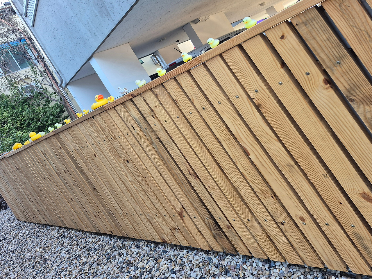 75세는 나무를 좋아하고, 무언가 만드는 걸 즐긴다. 사촌 동생이 수입 업무를 하면서 나온 팔레트를 보내주었다. 일 년 동안 충분히 가지고 놀만한 양이었다. 나무 냄새를 맡으며 팔레트를 하나씩 분해하기 시작했다. 그렇게 분해한 나무로 69세에게 작은 공간을 만들어주었고, 겨울 동안에는 오래된 시멘트벽을 나무 벽으로 바꿔 놓았다. 금이 가고 얼룩진 시멘트벽이 나무를 붙이자 긴 골목길처럼 깊이가 생기고 품위도 있다.