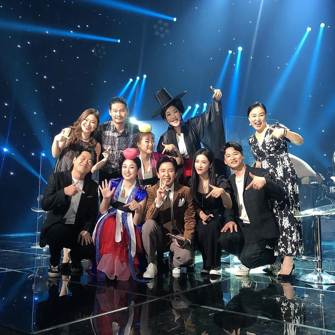 춤 역시 뭇사람들의 이목을 끈다. 우리가 흔히 ‘춤’이라고 말하면 무엇이 떠오르나. 긴 장삼 흩날리는 승무? 얇은 다리 한쪽으로 빙글빙글 도는 발레? 유명한 아이돌의 칼군무? 무엇이 되었든 ‘악단광칠’ 춤에 못 따라갈 것이다. 막춤 같은 쉽고 간단하되 노래 가락에 절묘하게 맞아떨어지는 독특한 춤사위는 누구나 따라 할 수 있는 ‘흔한 춤’이다. 회식자리에서 술 한 잔 걸치고 노래방에 가면 나오는 상사의 몸짓, MT에 가서 우리도 모르게 노래에 맞춰 흔들고 있는 그 몸짓을 무대 위에서 당당하게 보여준다. 비록 완벽한 칼군무는 아닐지라도 보는 이로 하여금 웃을 수 있고, 따라 할 수 있게 만드는 것이 ‘악단광칠’의 춤이다.