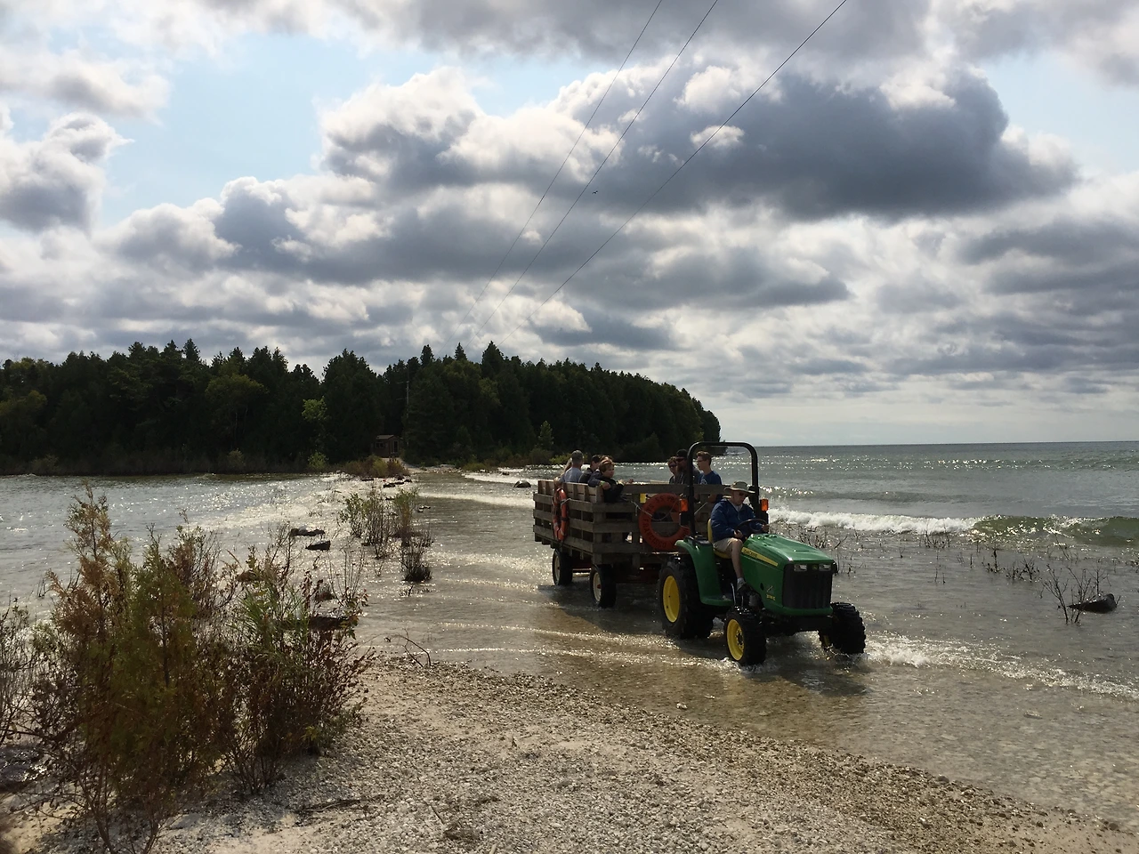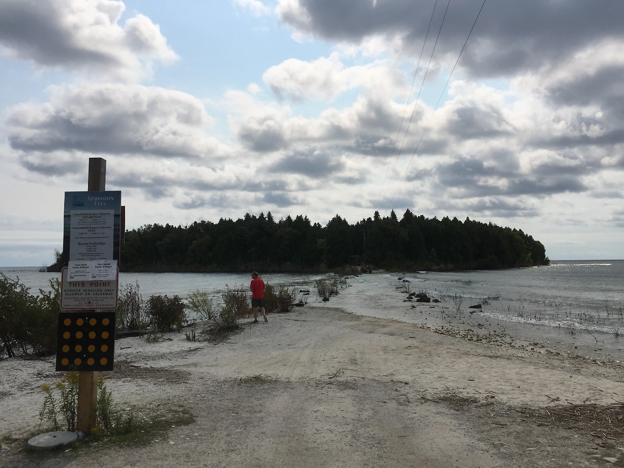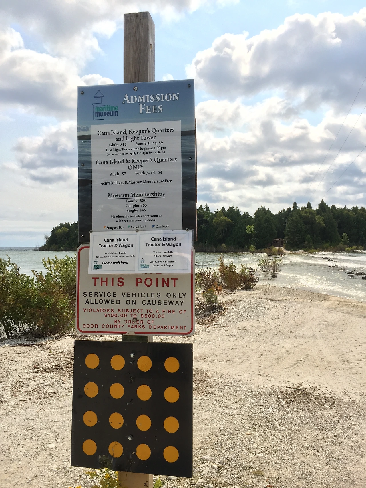 Cana Island Lighthouse. 어렵게 찾아갔는데(다 와서 내비 인식 불가) 이런 발목 걷으면 걸어 건너갈 수 있는 건너편 등대 있는 섬까지 경운기(일명 딸딸이) 운행. 등대와 예전 관리인 사무실 보는 거 7불, 등대 올라가는 거 포함 12불. 완전 '봉이 김선달'. 어쩌랴 섬 입구에서 7불 표 샀다.