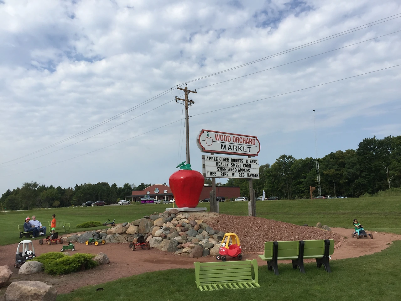 이곳 도어 카운티, 강원도 7번 국도처럼 해안도로 따라가면 만나는 작은 호숫가 도시들의 행렬.(지도를 보면 이탈리아처럼 장화 모양 돌출) 다음 목적지는 바로 위 Fish Creek. 이곳 가는 도중 만난 Wood Ochard Market이 또 뜻밖의 횡재였다. 일종의 잡화점. 가장 미국스러운 분위기에 세상 태평한 백인들 한가로운 쇼핑. 인형 같은 아이들의 천진한 웃음. 볼 거 많은 물건들. 한참 둘러보다 살 거 사고 10:30 출발.