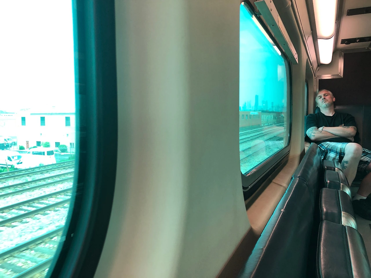 그리고 역 내로 들어섰는데 표를 살 수 있는 티켓 창고가 문 내려진 상태. 뭐지? 하다가 들은풍월이 있어 그냥 기차 안에서 역무원에게 표를 사기로 했다. 근데 철로가 두 개. 어느 방향으로 가야 하는지 약간 혼란. 한국처럼 표지판에 왼쪽 어디, 오른쪽 어디, 이런 친절은 없었다. 다만 ‘써인 표지판만. 미뤄 짐작컨대 오른쪽이 시카고일 것, 이라 생각했다.