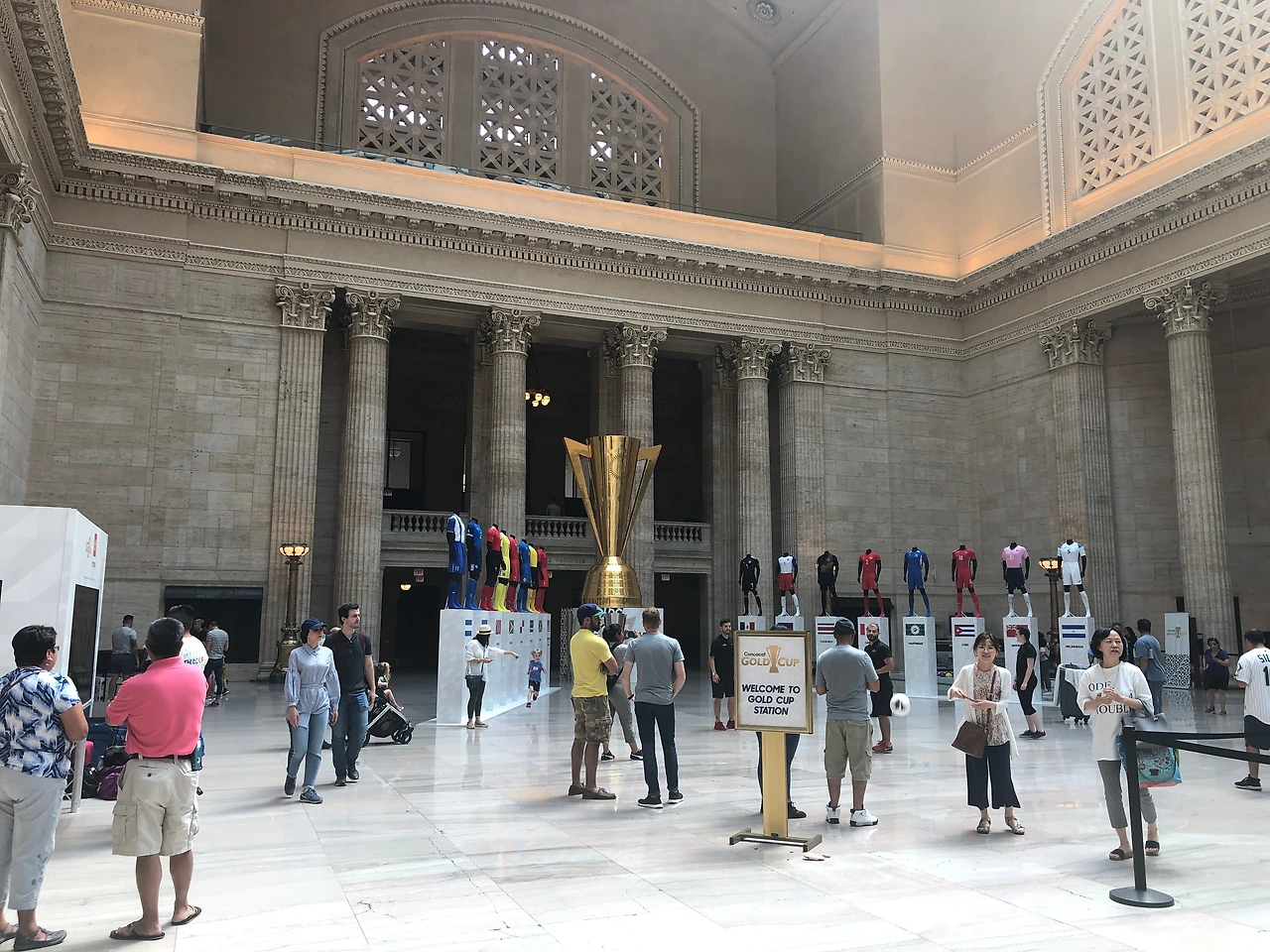 유니온 스테이션 내부. 마침 결승전을 하루 앞두고 골든컵 이벤트가 열리고 있었다. 이튿날 미국은 멕시코에게 1:0으로 져 우승을 내줬다.(골든컵 무엇?)