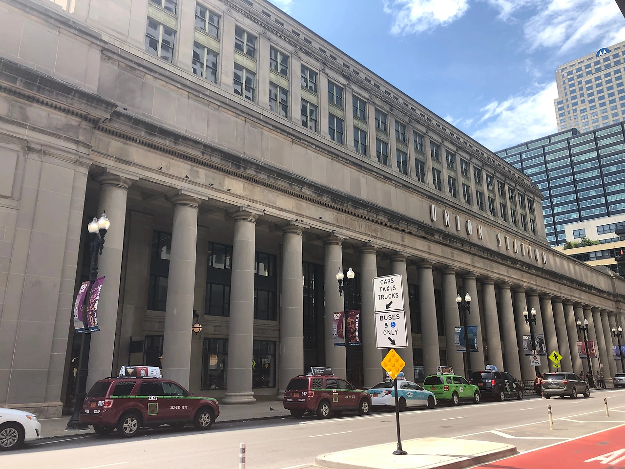 “시카고 유니온 역(Chicago Union Station)은 1925년 일리노이 주 시카고에 문을 연 주요 철도역으로 1881년에 지어진 이전 역을 대체한다. 시카고에 남아 있는 유일한 시외철도 터미널이며, 통근열차의 시외철도 1차 터미널이다. 역은 시카고 루프 바로 외곽인 웨스트 애덤스 스트리트와 웨스트 잭슨 대로 사이에 있는 시카고 강 서쪽에 서 있다. 접근 트랙과 저장 트랙을 포함하여 약 9.5개의 도시 블록을 포함한다. 대부분 지하로, 거리와 고층 건물 아래에 묻혀 있다. 이 역은 중서부에서 암트랙의 대표 역 역할을 하며, 6개의 메트라 통근 노선의 시내 종착역이기도 하다…”