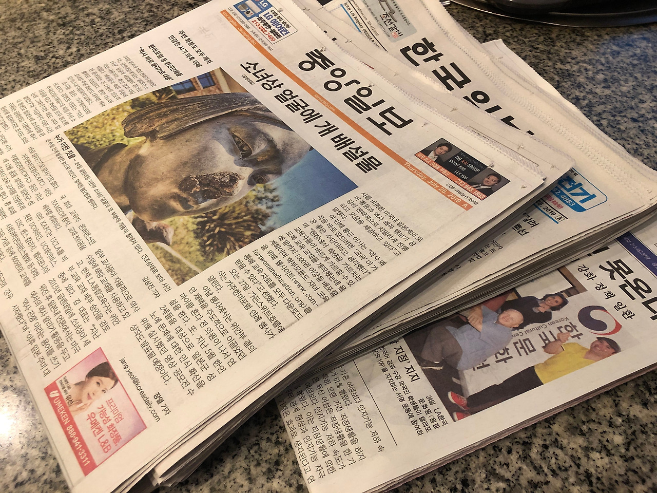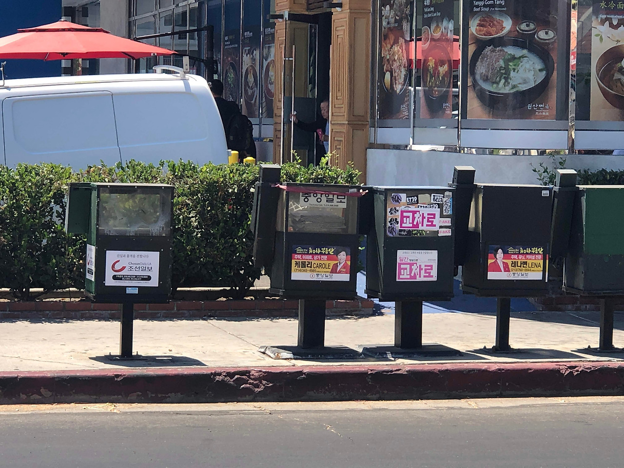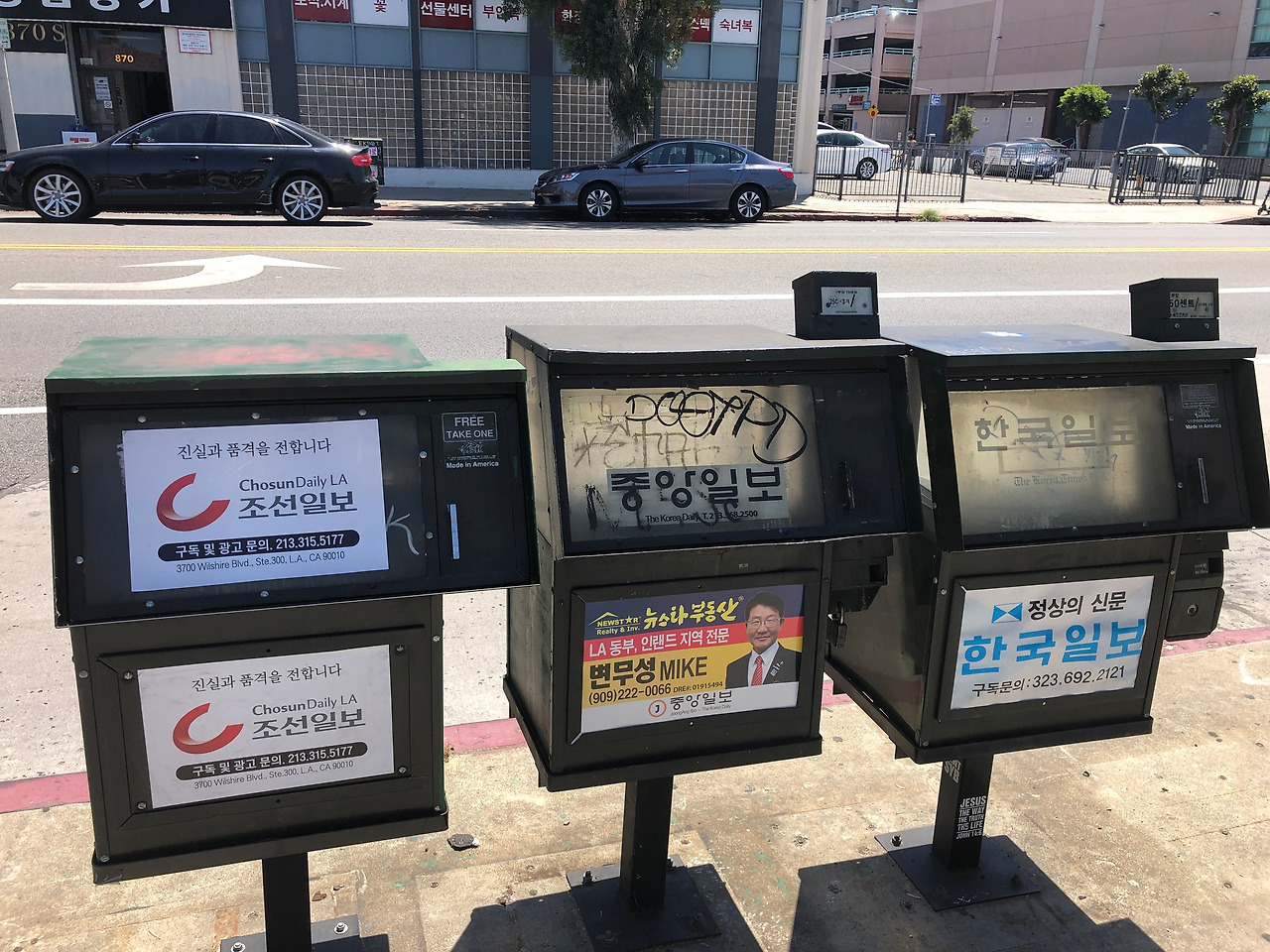 #LA탐방 한인타운 한인 미디어 현황. 조선•중앙•한국•교차로 경쟁 구도. 코리아타운 데일리도 발간. LA교차로•조선일보•코리아타운데일리 무료, 한국•중앙 유료. 한국 1부 0.50불.
