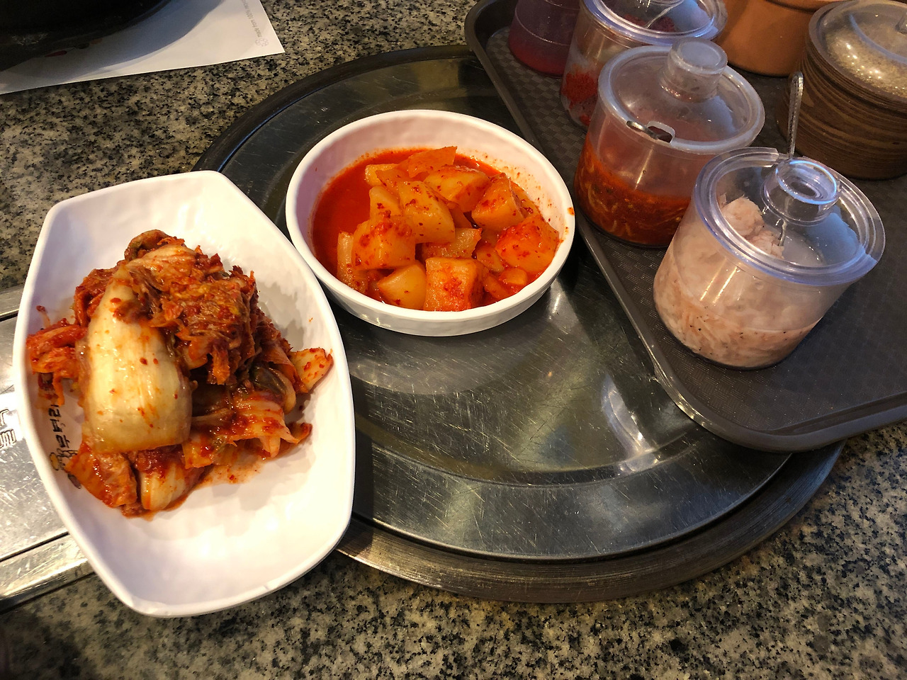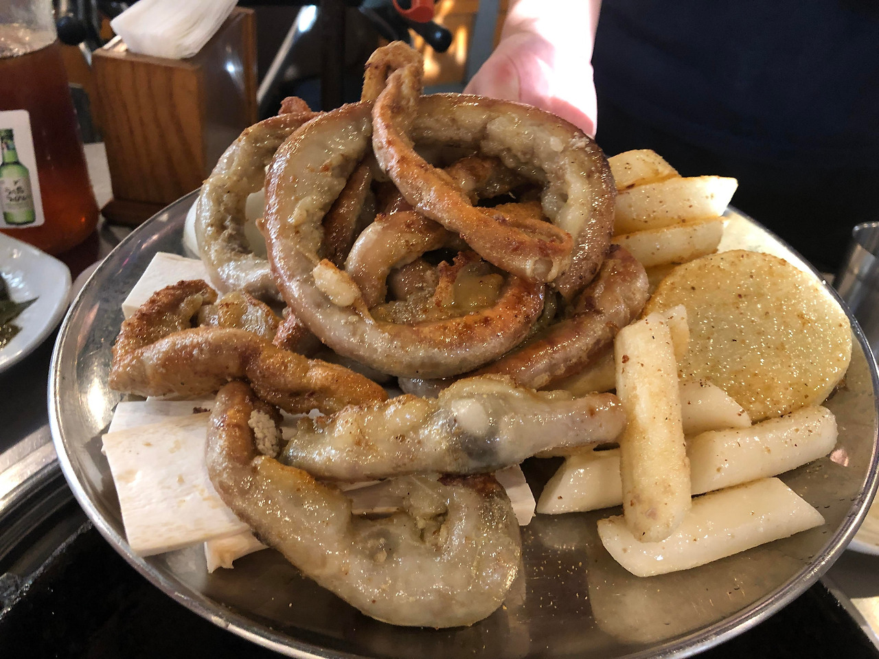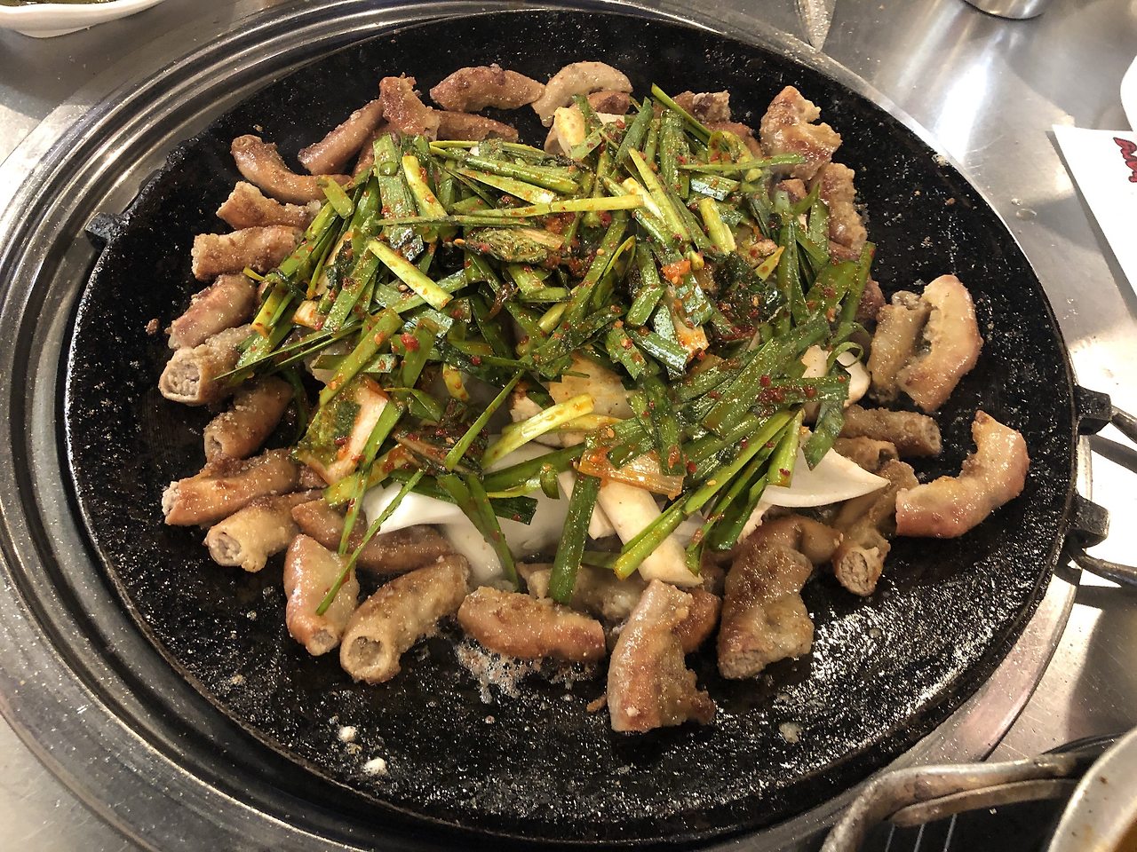 LA 간다 하니 모두가 권한 메뉴. 맛있었다. 시카고에서는 곱창’전골’만 먹어봤다. 곱창’볶음’, 곱이 풍부해 입 안에서 터지더라. 게다가 불쇼는 덤. 파무침과 같이 한 입 넣으면 절로 맥주 부르는 맛.