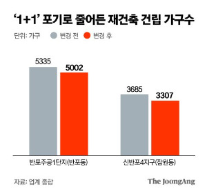 여기서는 재건축 환경에 대해 확인하면서 공급되는 주택이 얼마나 존재하는지 확인해 볼게요. 재건축을 하게 되면 추가로 분양할 수 있는 물량이 나옵니다. 그런데 2012년 도입된 기존 주택을 둘로 쪼개는 1+1 재건축 재개발로 가구수가 줄어든 상황입니다. 조합원(기존 아파트 소유주)이 40평 대를 가지고 있었다면 30평 대를 나중에 재건축 이후 받겠다고 했을 때 10평를 1+1으로 받을 수 있다는 겁니다. 이때 1 가구 2 주택에 대한 규제로 인해 한 채를 더 받기를 포기하고 넓은 평형을 선택하는 등 규제로 인한 왜곡된 선택이 생겨 결국 공급 가구수가 줄어들었다는 겁니다. 적절한 규제는 시장에 도움이 되지만 어떤 규제는 시장 전체에 악영향을 미칠 수도 있죠. 물론 단기적으로 봤을 때 가구수가 줄어든 것이 다주택자를 규제하는 효과와 비교해 봤을 때 나쁘다는 이야기는 아닙니다. 다만 정책을 수립하고 집행했을 때 의도치 않았던 효과가 생길 수 있으니 그에 대해 지속적으로 관심을 가져야 한다는 생각입니다.
