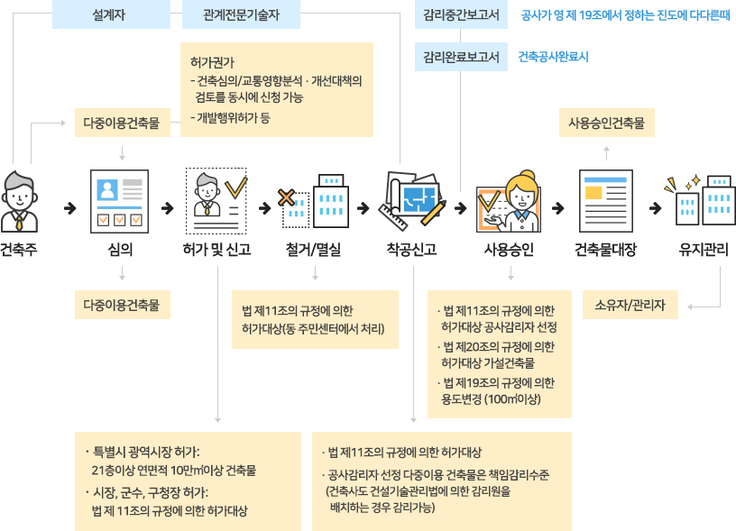 아래 건축 절차에서 인허가를 받은 이후 철거/멸실 이후에 착공신고를 하게 되어있습니다. 인허가는 받았지만 아직 공사에 들어가지 못한 곳도 있을 수 있다는 거죠. 실제로 임장을 가보면 인허가를 받았지만 철거/멸실이 진행되지 않는 곳들이 눈에 띕니다. 실제 아래 표를 보면 인허가 지표가 줄어든 것보다 착공이 엄청나게 줄어든 것을 볼 수 있죠.