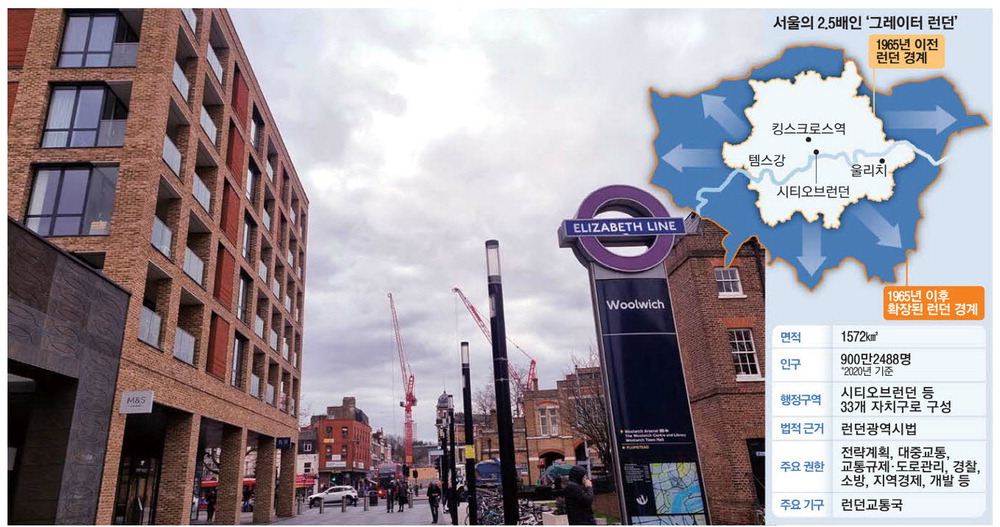 영국 런던의 행정구역 면적은 약 1572km^2, 일본의 수도 도쿄는 약 2194km^2다. 대한민국 서울(605km^2) 보다 훨씬 크다. 런던은 1965년, 도쿄는 1943년에 각각 행정구역을 확장해 지금의 모습이다. 서울은 1973년이 세부적인 변동을 제외하고 마지막 확장되어 지금의 모습이다.