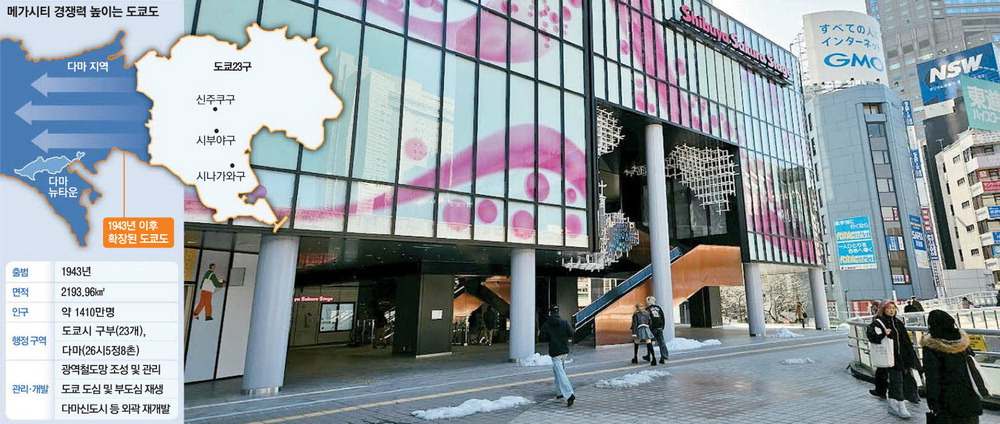 이번에는 도쿄를 알아보자. 1943년 도쿄 옛 도심의 체계적인 상수원 관리를 위해 주변 행정권을 합쳐 지금의 도쿄도가 지정됐다. 2000년대 이후 다마신도시는 '실패한 베드타운 신도시'라는 대명사로 남게 됐다. 그 이유 중 하나로 1943년 당시 갑자기 넓어진 시 영역에 체계적이지 않은 개발로 도쿄 경쟁력을 오히려 갉아먹었다는 분석이 있다. 그 후 2040년을 목표로 다마신도시 외곽지역 도시재생을 목표로 정했다. 목표를 이루기 위해 먼저 철도 교통을 재정비하려고 한다. 다른 나라의 도시경쟁력을 살펴보더라도 교통이 가장 중요하고 기본적인 토대라는 것을 알 수 있다.