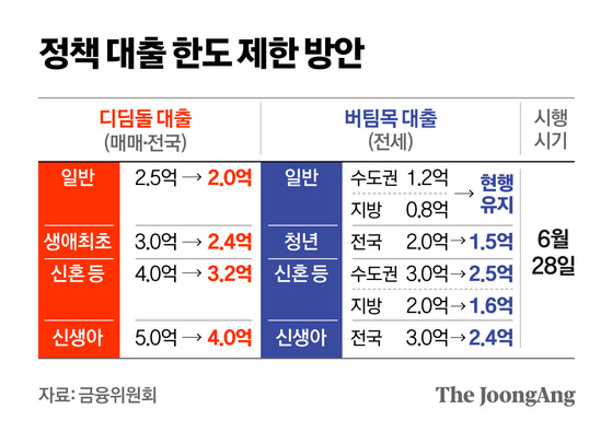 가계대출 증가의 주범으로 꼽혔던 정책대출은 지역과 상관없이 한도가 일부 제한됩니다. 디딤돌 대출의 경우 일반대출(2억 5000만 원→2억 원), 생애 최초와 청년 대출(3억 원→2억 4000만 원), 신혼부부 대출(4억 원→3억 2000만 원), 신생아 대출(5억 원→4억 원)에서 최대 1억 원 한도가 줄어들게 되죠. 그런데 과연 저 정도 금액이 가계대출 증가의 주범인지 의심스럽습니다. 대출을 받지 않으면 집을 구입할 가능성 자체가 없어지고 주거가 불안정한 상태에 내몰리게 되는데 정책의 의도가 가계대출을 줄이면서 시민들의 주거불안정에 있는 건지 궁금하네요.